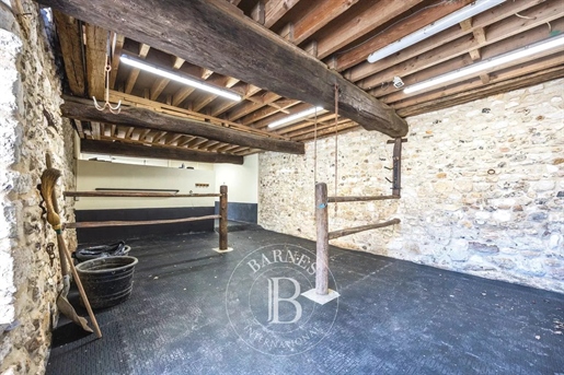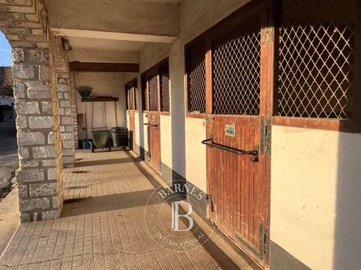 Entourant la demeure principale, la cour est bordée de plusieurs bâtiments en pierre (dont une ancienne chapelle) comprenant une maison d’amis (environ 65 m²) entièrement rénovée avec un salon, une salle à manger, une cuisine, deux chambres et une salle de bains. Un Barn de 250 m², transformable en salle de réception, avec actuellement 11 box intérieurs (3,5m x 3,5m), avec en pièces attenantes : une grande sellerie équipée 28 m², un atelier 14 m² et un graineterie 33 m².