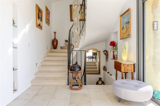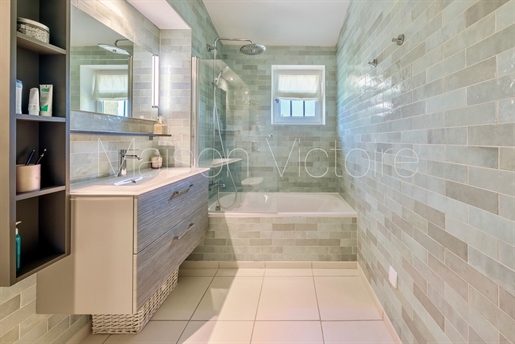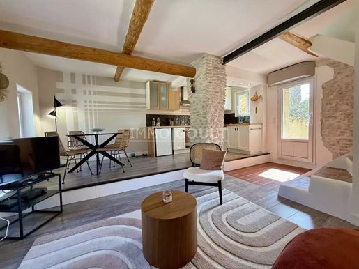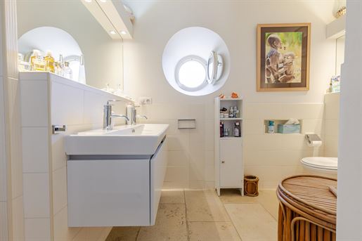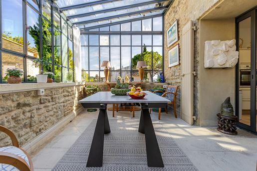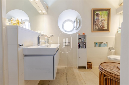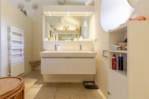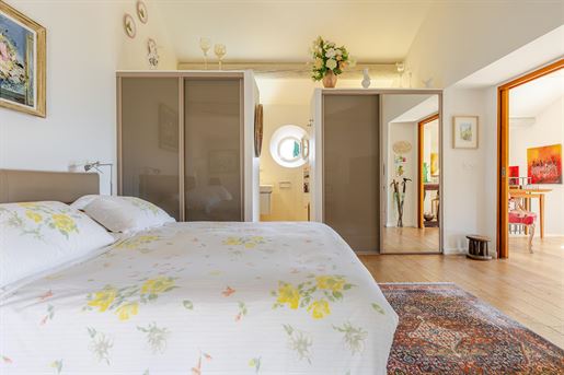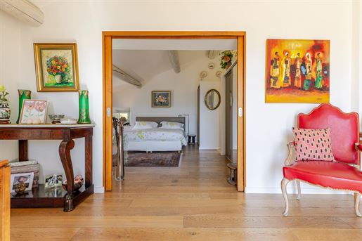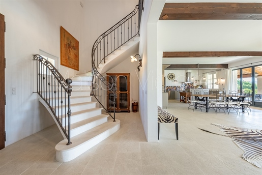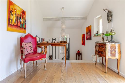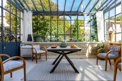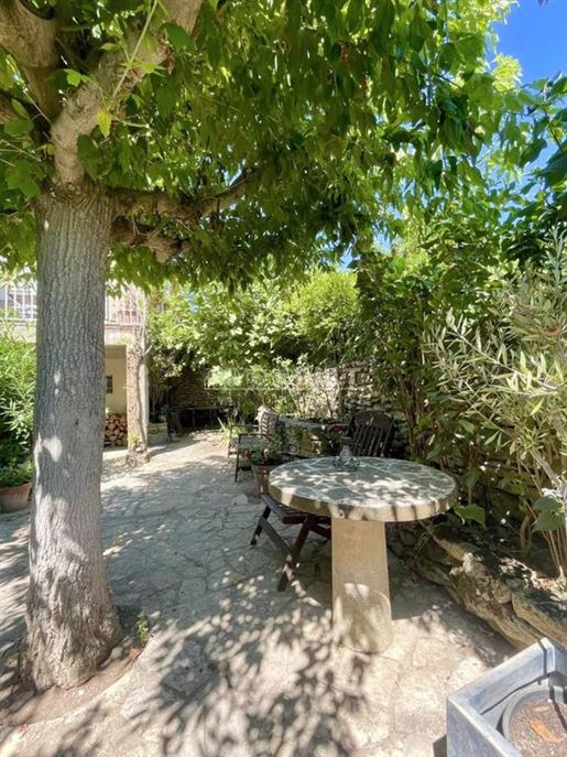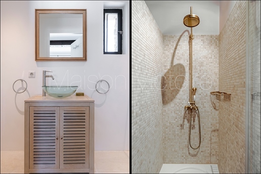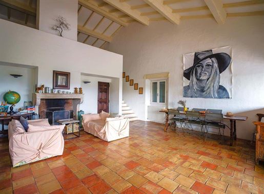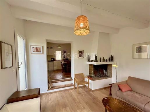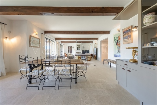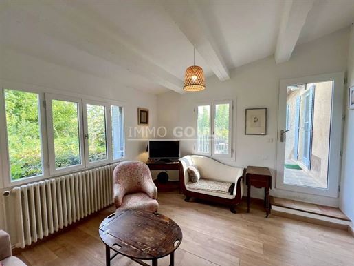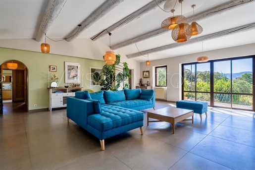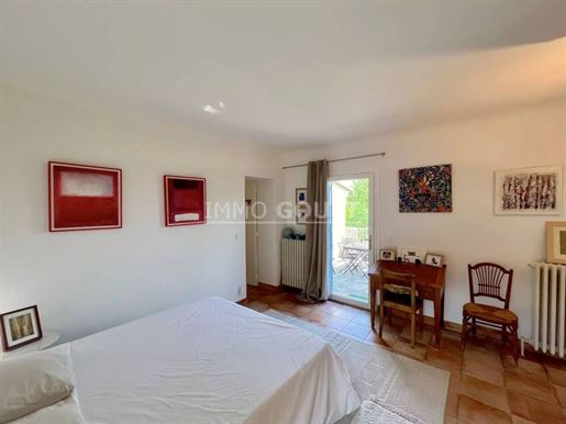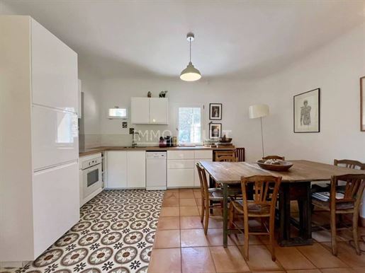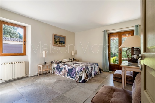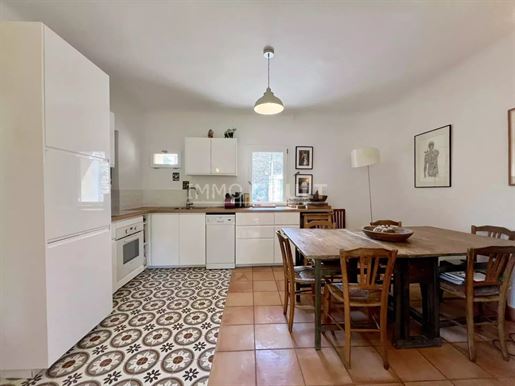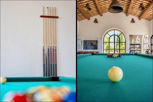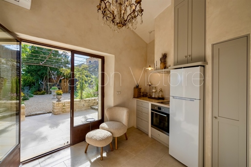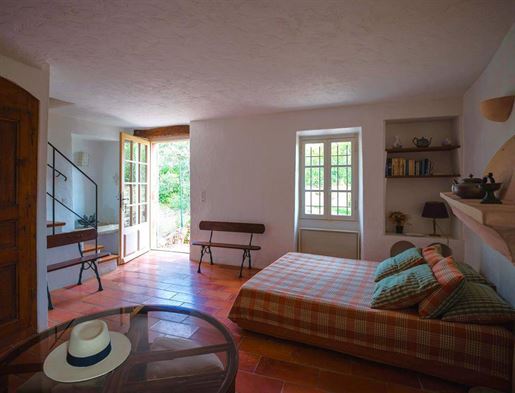 La propriété dispose également d'un atelier climatisé, idéal pour les créatifs ou comme bureau, ainsi que d'un grand garage. Les prestations comprennent chauffage central par pompe à chaleur, climatisation dans la pièce à vivre et l'atelier, panneaux solaires photovoltaïques, eau de ville, abonnement au canal de Provence pour l'arrosage du jardin, double vitrage, portail électrique, visiophone, fibre optique, grand garage avec prise renforcée pour recharge de voiture électrique et carport pour stationnement supplémentaire.