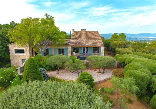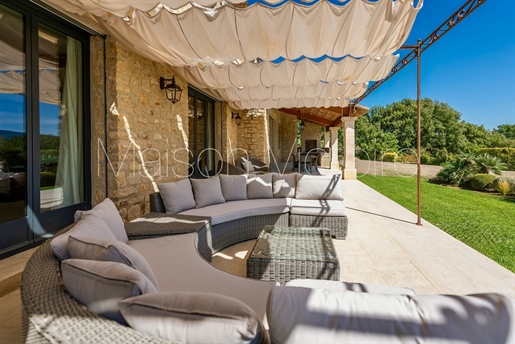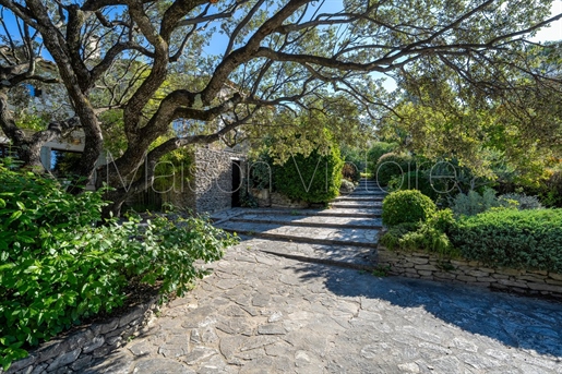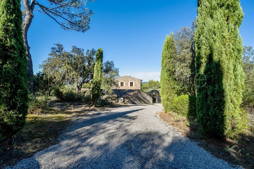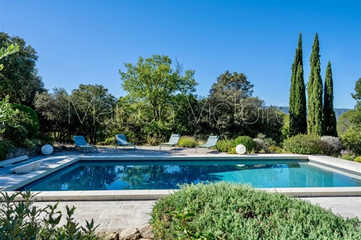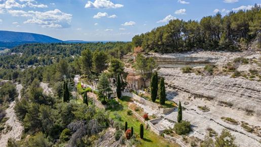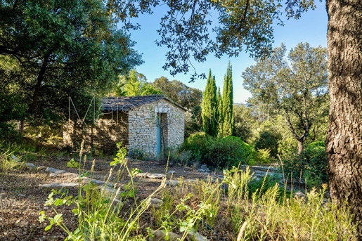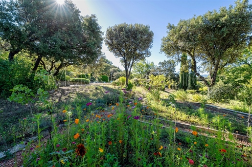 Implantée sur près d'un hectare de terrain paysager, la propriété offre un jardin sec typiquement provençal, abritant une belle variété de plantes, arbustes, arbres et herbes indigènes, et entouré de chênes centenaires. Des sentiers parcourent le jardin et mènent à une série d'espaces de repos ombragés et de terrasses propices aux repas en plein air, invitant à la détente et à la quiétude. Au coeur du jardin se trouve une piscine au sel de 10 m x 5 m, bordée d'une vaste terrasse en pierre et bénéficiant d'une excellente vue sur la vallée en contrebas.