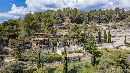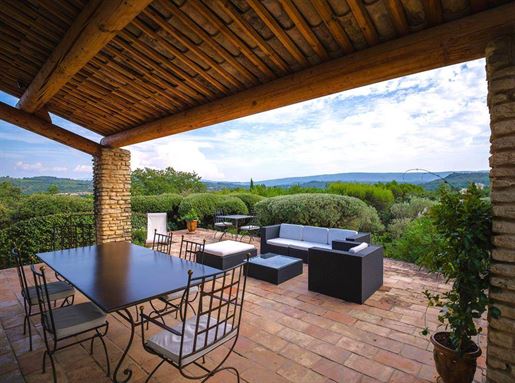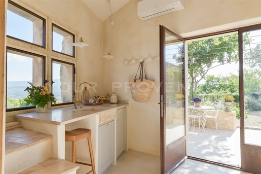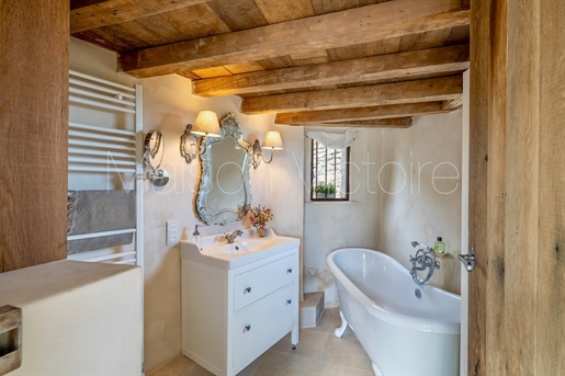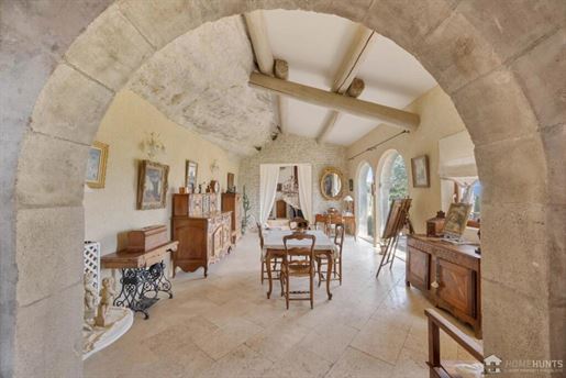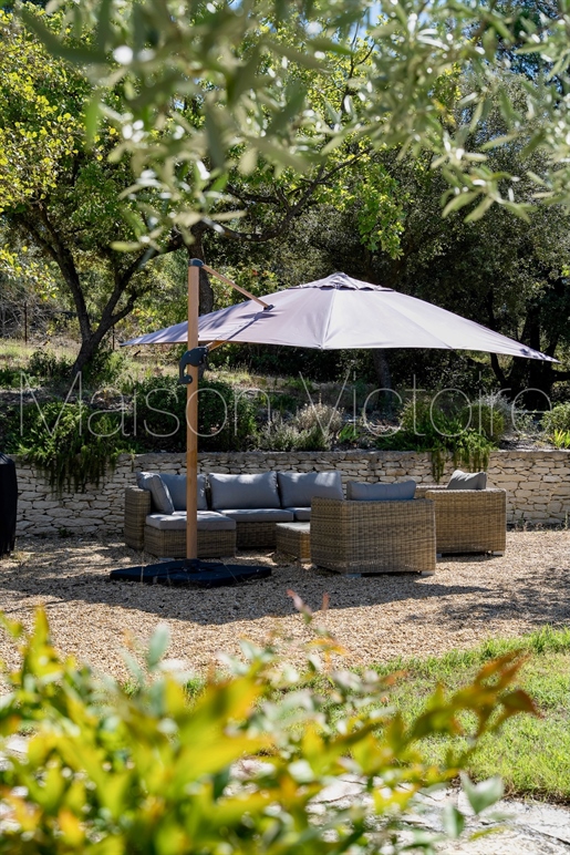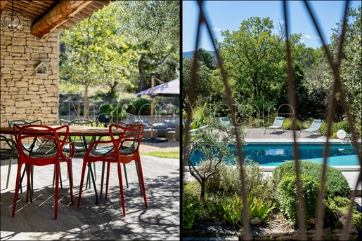 Nichée au coeur d'une magnifique forêt de chênes, cette propriété rénovée avec goût s'étend sur presque un hectare de terrain et se situe dans le Triangle d'Or, à proximité du village recherché de Goult. Spacieuse et repensée de façon intelligente pour offrir un excellent niveau de confort moderne, elle se compose d'une grande maison principale et d'un gîte indépendant pour les invités. Avec son vaste séjour baigné de lumière et ses larges baies vitrées offrant de superbes vues dégagées, la propriété bénéficie d'une intimité totale, d'un grand confort et d'un charme certain ? une superbe retraite en Luberon.