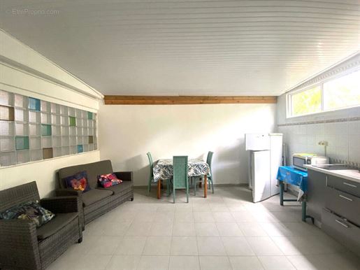 En rez-de-jardin, une troisième chambre aménagée comme une véritable suite, est composée d'un salon, une salle d'eau privative, de rangements et d'une cuisine d'été. Idéale pour recevoir famille ou amis en toute indépendance. Toutes les pièces ont une belle vue mer.
