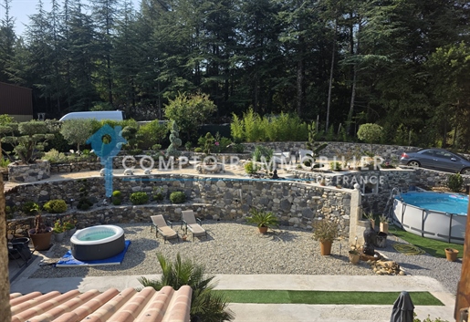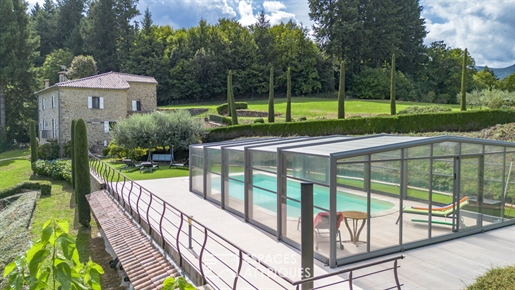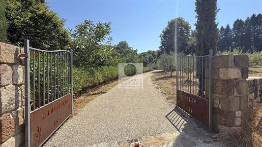 Sur plus de 2 hectares, la propriété s'étend sur un terrain soigneusement entretenu, planté de vergers, d'oliviers et de châtaigniers, symboles emblématiques de l'Ardèche. Le système d'arrosage intégré, alimenté par un forage, facilite l'entretien de ce vaste domaine et assure une autonomie précieuse.
