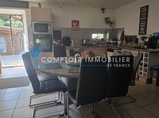 La cuisine, spacieuse et entièrement équipée, incarne l'âme de la maison : un lieu vivant, pensé pour recevoir et partager. Elle s'ouvre sur une magnifique cour intérieure pavée, véritable extension des espaces de vie. Ici, les repas d'été se prolongent dans une ambiance douce et authentique, protégée du vent et baignée de soleil.