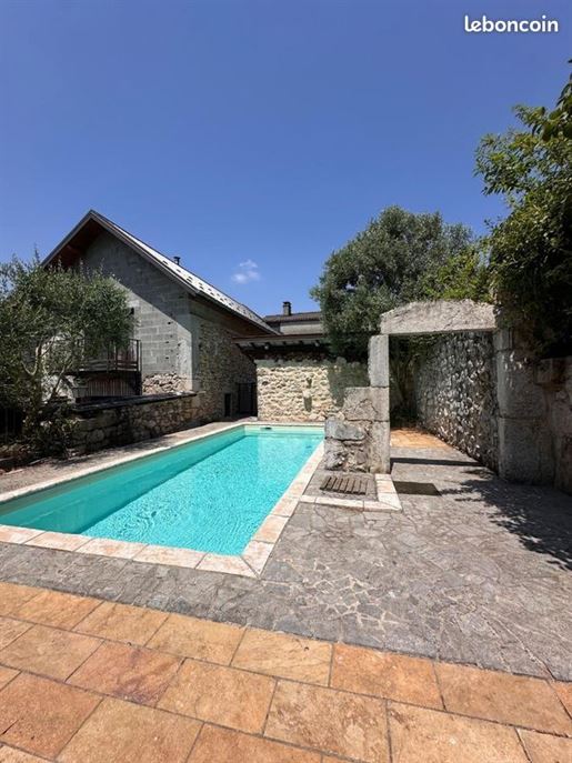 A vendre - Maison de caractère avec vue sur les vignes de Jongieux Située dans le village de Jongieux, au c?ur d'un environnement naturel privilégié, cette maison de 120 m² habitables, restaurée avec un soin particulier porté au confort et à la qualité des matériaux, allie caractère et modernité. A l'intérieur, les volumes sont lumineux et bien pensés : une entrée avec espace de rangement et un cellier, une cuisine équipée ouverte sur la salle à manger donnant directement sur l'extérieur, un vaste salon, une buanderie et un Wc. A l'étage, vous trouverez un grand bureau, deux chambres partageant un balcon avec vue sur les extérieurs, ainsi qu'une troisième chambre composée d'une suite parentale avec dressing et salle d'eau. Une seconde salle d'eau complète l'étage, avec un Wc à chaque niveau.. A l'extérieur, la maison s'ouvre sur une terrasse exposée plein sud, avec piscine creusée, arche en pierre et oliviers, le tout dans un décor soigné entouré de lavande, et d'une vue imprenable sur les vignes environnantes. Un petit poolhouse avec abri de jardin attenant vient compléter l'ensemble. En annexe, une cave pratique pour le rangement. A propos de Jongieux (73) : Située entre lac du Bourget et vignobles savoyards, Jongieux offre un cadre de vie paisible, entouré de nature et de paysages vallonnés. La commune est reconnue pour ses vins Aoc et son environnement propice aux activités de plein air : randonnées, vélo, sports nautiques? Commodités : commerces et services à Yenne (10 min), marché local, producteurs de la région. Écoles : école primaire à proximité, collège à Yenne, lycées à Chambéry ou Belley. Vie associative : clubs de sport, événements villageois, animations culturelles. Activités : lac, sentiers, vélo, parapente? un cadre idéal pour les amoureux de nature. Dans un village calme, un bien unique dans un cadre privilégié, idéal pour une résidence principale ou une maison de vacances. Pour toute demande d'information complémentaire ou pour organiser une visite, n'hésitez pas à la négociatrice immobilière de l'étude Chloé Barneoud-Rousset Les informations sur les risques auxquels ce bien est exposé sont disponibles sur le site Géorisques : 380 000 euros (honoraires de négociation à la charge du vendeur)