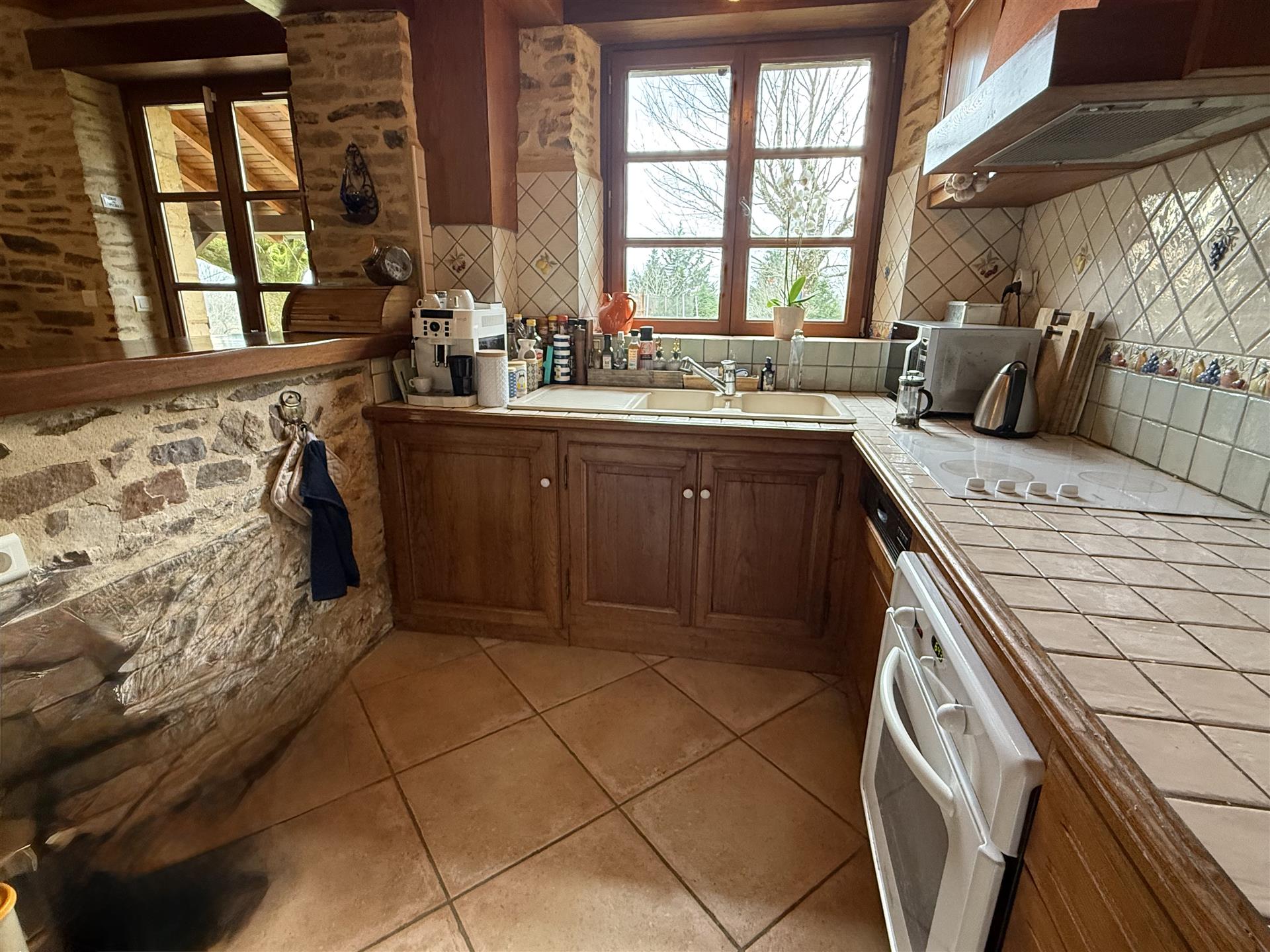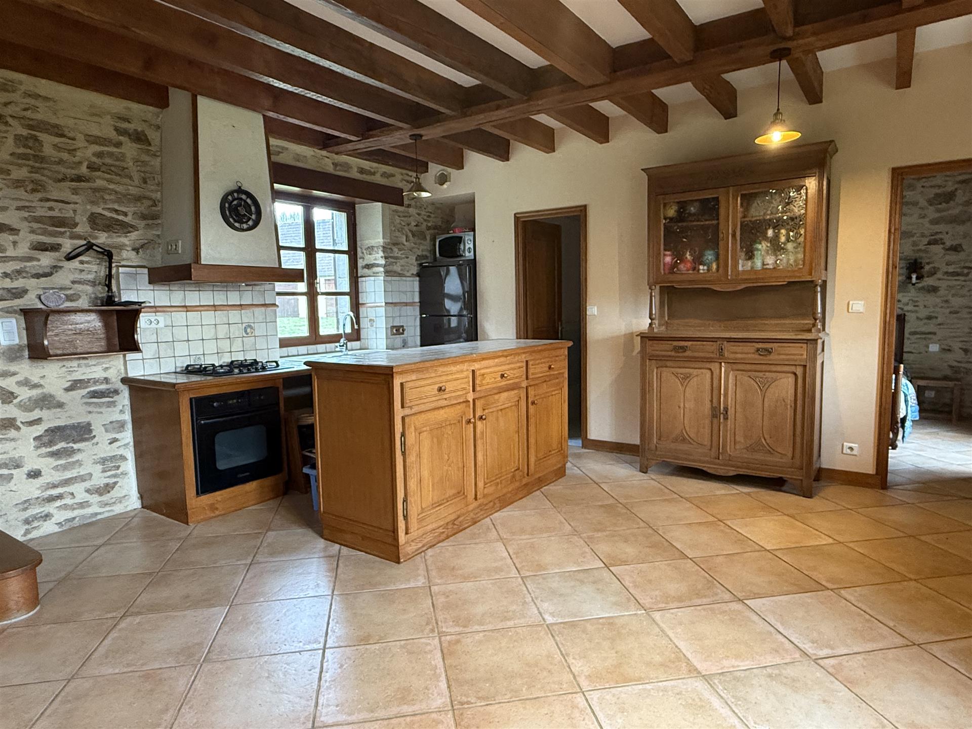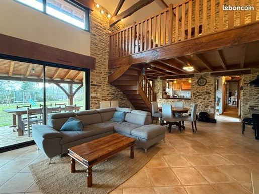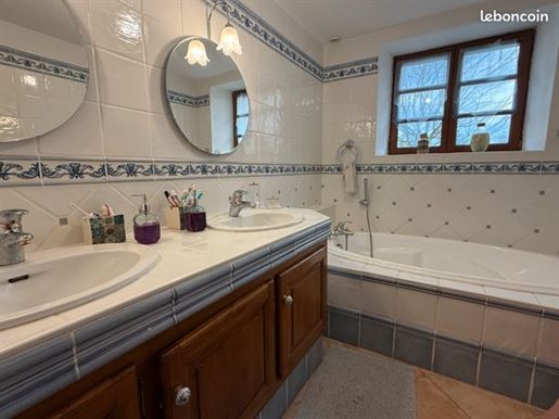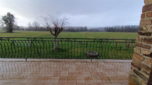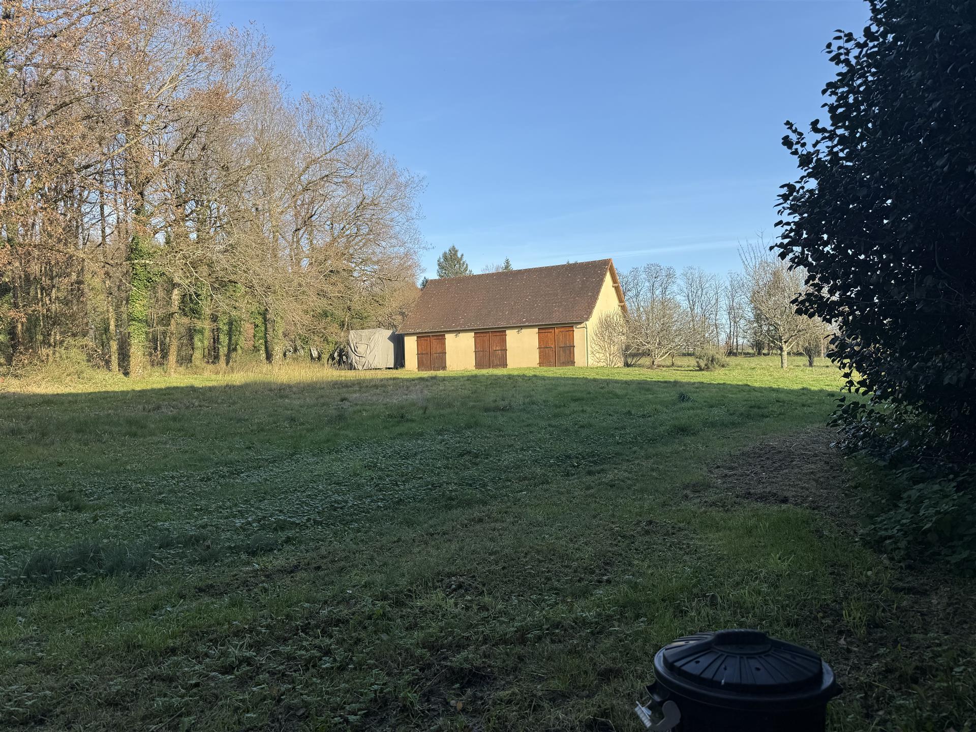 A22494lnh24 - Located in the lovely village of Jumilhac-le-Grand, this super property has many amenities within walking distance. These include, a bar, a restaurant, a butcher’s shop, a bakery, a grocery store, a pharmacy, and of course the splendid Chateau-de-Jumihac in the nearby central square. A drive of 10 mins brings you to the small town of La Coquille where you will also find a small supermarket, a train station, doctors, vets, a garden centre and a train station. A 15 minute drive in the opposite direction brings you to St-Yrieix-la-Perche where the vast majority of your daily needs will be met.The property benefits from:- Single floor living- Oil-fired central heating- Wood-burning stove- Rear balcony/terrace- Connected to Mains drainage- Garage- Private garden- Close to amenitiesKITCHEN (3m x 4,6m = 13,7m2)This bright country-style kitchen has a patterned tile splashback, and contrasting fitted and moveable units in greys and navy blues. Wooden work surfaces and a ceramic sink complete the country look.LOUNGE - Dining Room (31,3m2)Clean white walls give a crisp contrast to the stone hearth with its wood burning stove and attractive parquet flooring. Double glass-panelled double doors lead out to the rear Balcony (3,4m x 5,8m = 20m2) which overlooks the west-facing gardenGAMES Room / Bedroom 4 (3,1m x 4m = 12,4m2)Currently housing a pool table which may be available to purchase, this games room would also make a pleasant double bedroom looking over the garden at the rear of the house.BATHROOM (1,4m2 x 2,4m2 = 3,5m2)This ground-floor bathroom is equipped with twin sinks and a bath with a shower placed overhead. A separate Wc is across the hallway, also on the ground floor.BEDROOM 1 (18,4m2)The largest bedroom of the property with additional benefit of a Dressing Room (...). Two further double bedrooms look out to the front of the property:BEDROOM 2 (3,5m x 3,3m2 = 11,6m2)BEDROOM 3 (3,4m x 3,5m = 11,9m2)SHOWER Room (8m2)Spacious washroom with a shower cabinet, a sink and a toilet. Sous-Sol / Basement (76,1m2)Covering the full footprint of the property, the basement houses the oli tank and central heating bolier, as well as giving plenty of workshop space and off-road parking which is accessible from the road.LANDTotal surface area of the plot is 436m2, with around three quarters of this area being garden, which is laid to lawn with a variety of flower beds.More photos available, all measurements approximate. Enquire today!BrochuresBrochure 1
