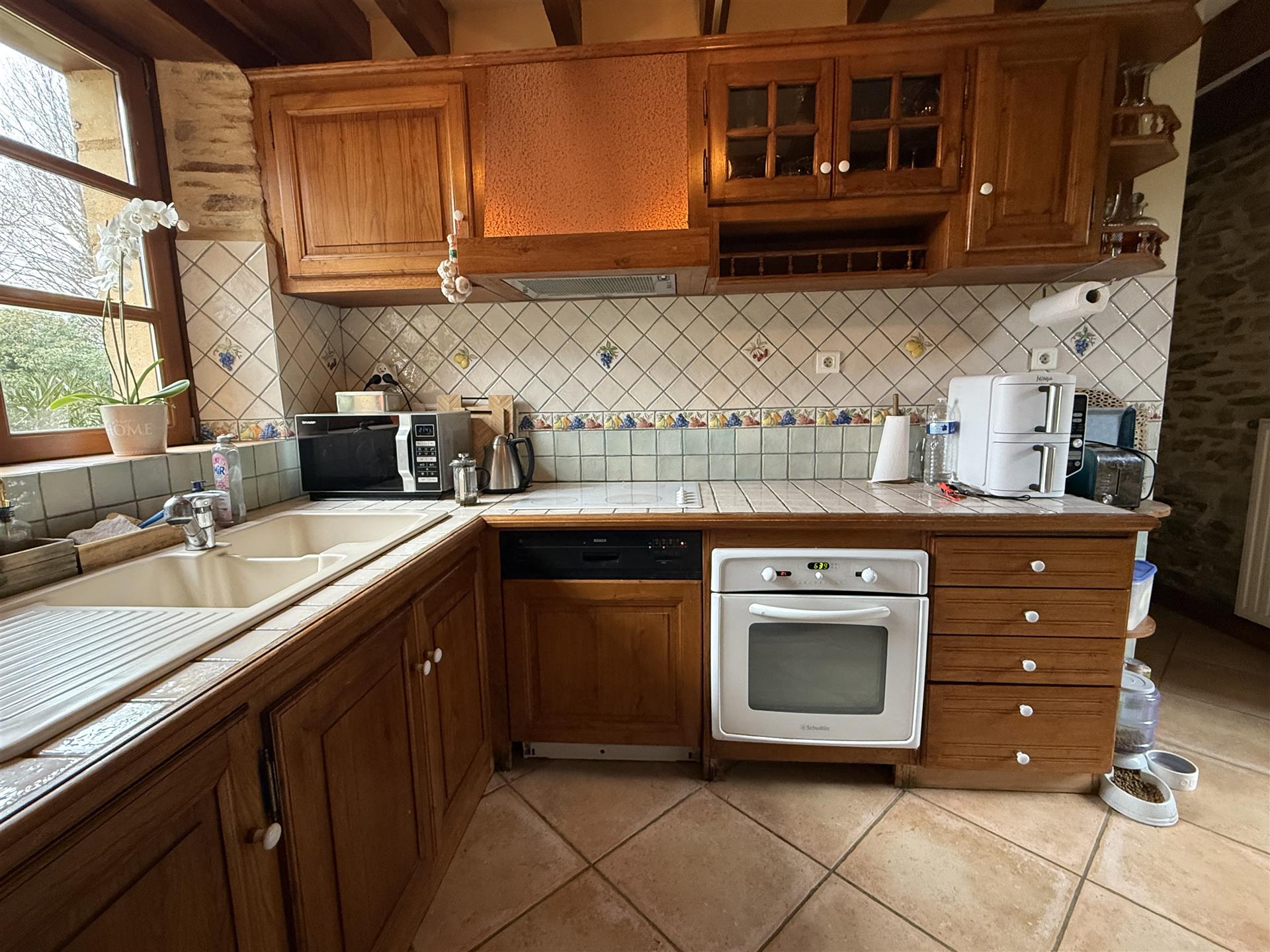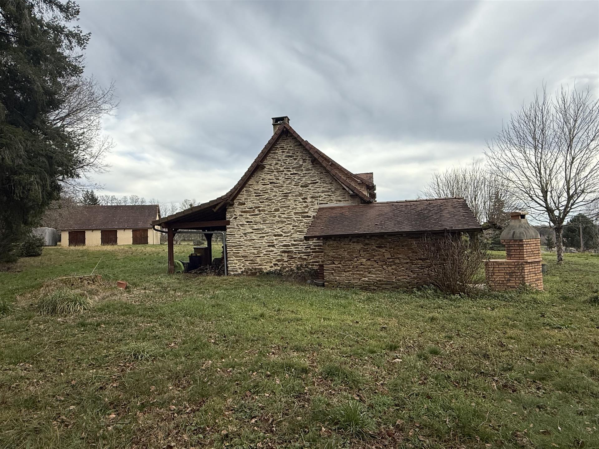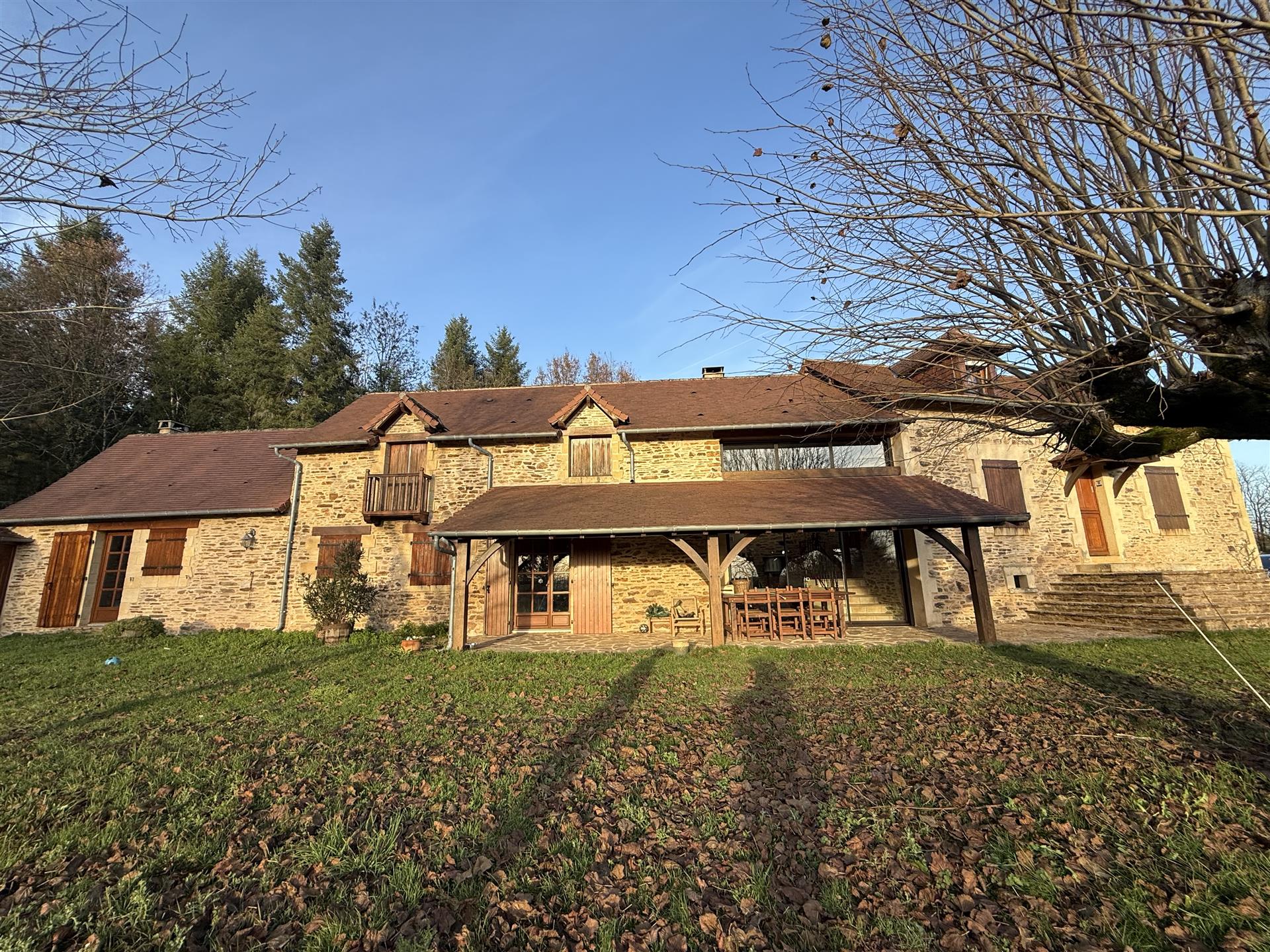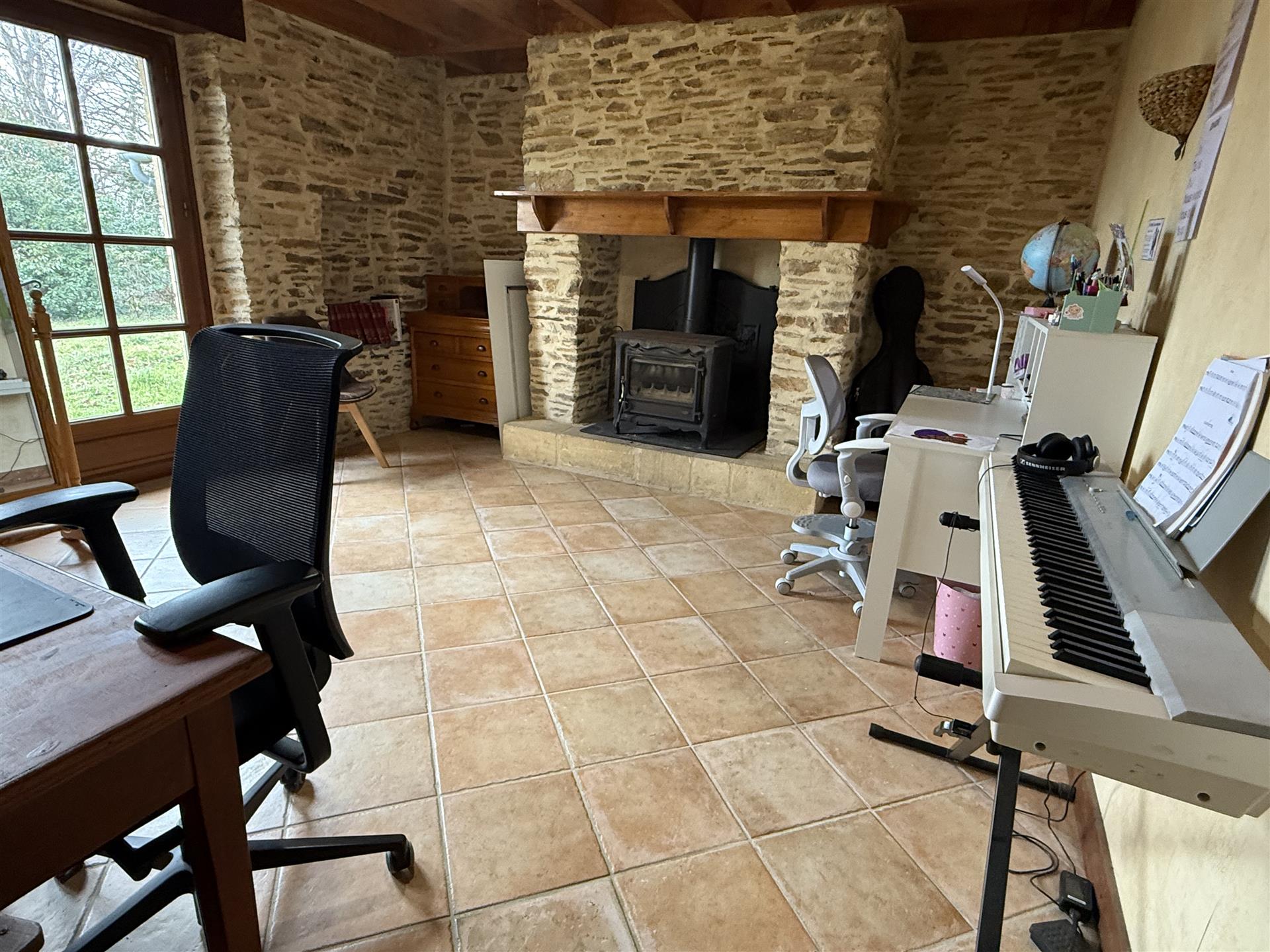 A22494lnh24 - Located in the lovely village of Jumilhac-le-Grand, this super property has many amenities within walking distance. These include, a bar, a restaurant, a butcher’s shop, a bakery, a grocery store, a pharmacy, and of course the splendid Chateau-de-Jumihac in the nearby central square. A drive of 10 mins brings you to the small town of La Coquille where you will also find a small supermarket, a train station, doctors, vets, a garden centre and a train station. A 15 minute drive in the opposite direction brings you to St-Yrieix-la-Perche where the vast majority of your daily needs will be met.The property benefits from:- Single floor living- Oil-fired central heating- Wood-burning stove- Rear balcony/terrace- Connected to Mains drainage- Garage- Private garden- Close to amenitiesKITCHEN (3m x 4,6m = 13,7m2)This bright country-style kitchen has a patterned tile splashback, and contrasting fitted and moveable units in greys and navy blues. Wooden work surfaces and a ceramic sink complete the country look.LOUNGE - Dining Room (31,3m2)Clean white walls give a crisp contrast to the stone hearth with its wood burning stove and attractive parquet flooring. Double glass-panelled double doors lead out to the rear Balcony (3,4m x 5,8m = 20m2) which overlooks the west-facing gardenGAMES Room / Bedroom 4 (3,1m x 4m = 12,4m2)Currently housing a pool table which may be available to purchase, this games room would also make a pleasant double bedroom looking over the garden at the rear of the house.BATHROOM (1,4m2 x 2,4m2 = 3,5m2)This ground-floor bathroom is equipped with twin sinks and a bath with a shower placed overhead. A separate Wc is across the hallway, also on the ground floor.BEDROOM 1 (18,4m2)The largest bedroom of the property with additional benefit of a Dressing Room (...). Two further double bedrooms look out to the front of the property:BEDROOM 2 (3,5m x 3,3m2 = 11,6m2)BEDROOM 3 (3,4m x 3,5m = 11,9m2)SHOWER Room (8m2)Spacious washroom with a shower cabinet, a sink and a toilet. Sous-Sol / Basement (76,1m2)Covering the full footprint of the property, the basement houses the oli tank and central heating bolier, as well as giving plenty of workshop space and off-road parking which is accessible from the road.LANDTotal surface area of the plot is 436m2, with around three quarters of this area being garden, which is laid to lawn with a variety of flower beds.More photos available, all measurements approximate. Enquire today!BrochuresBrochure 1