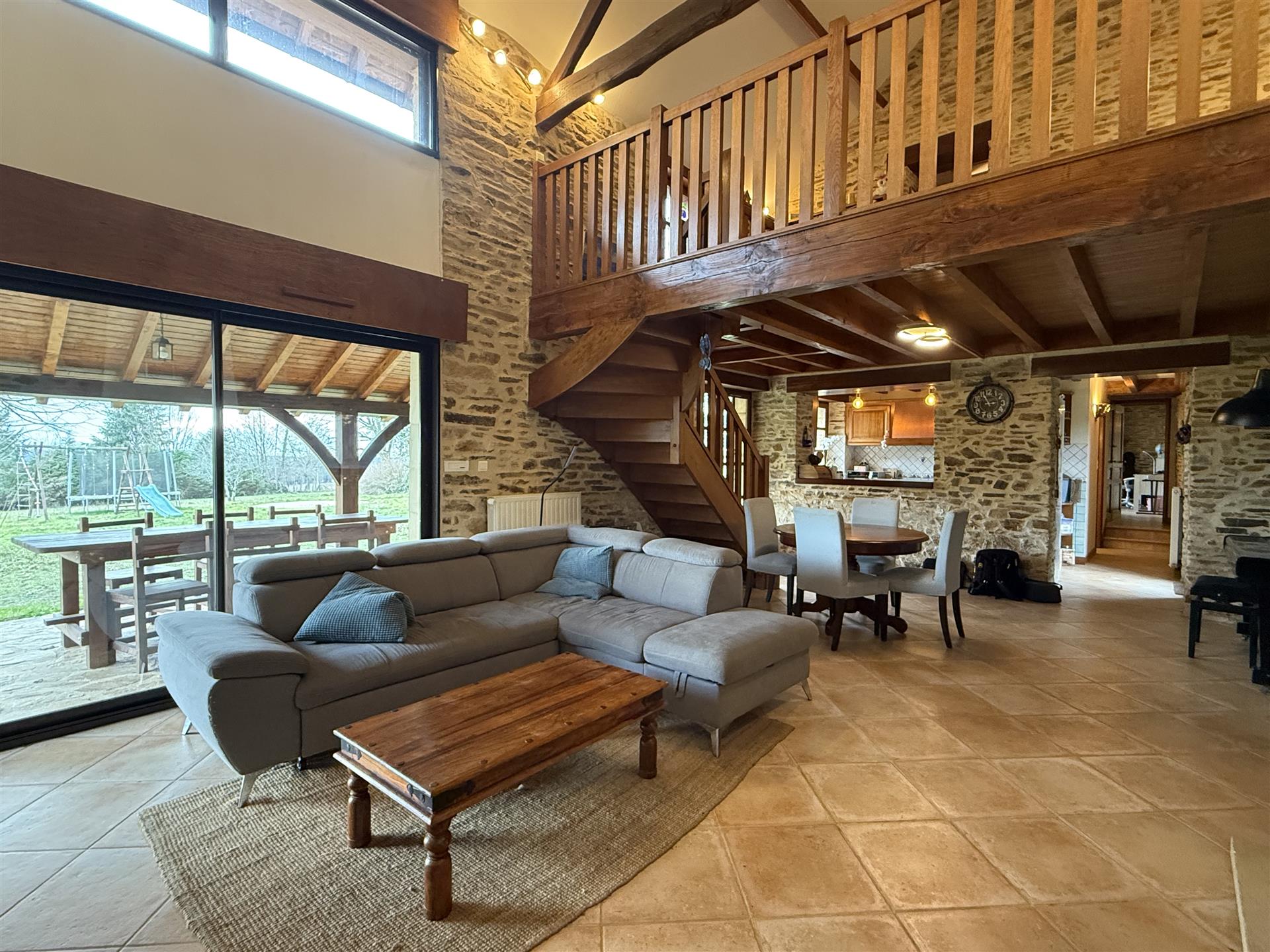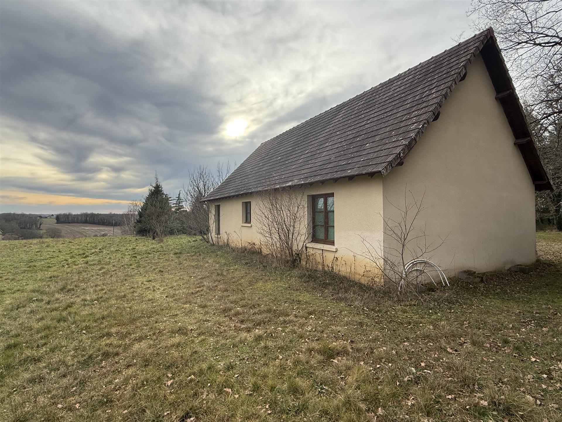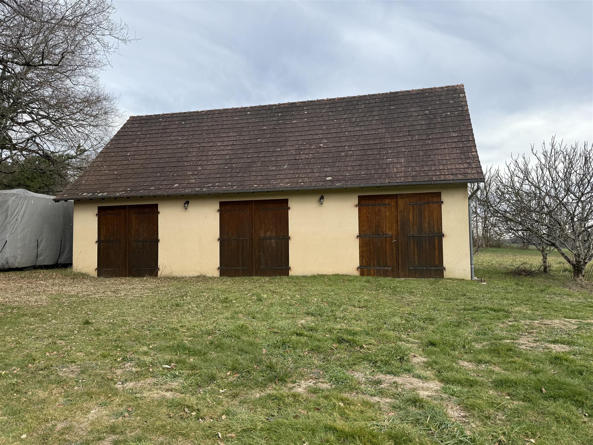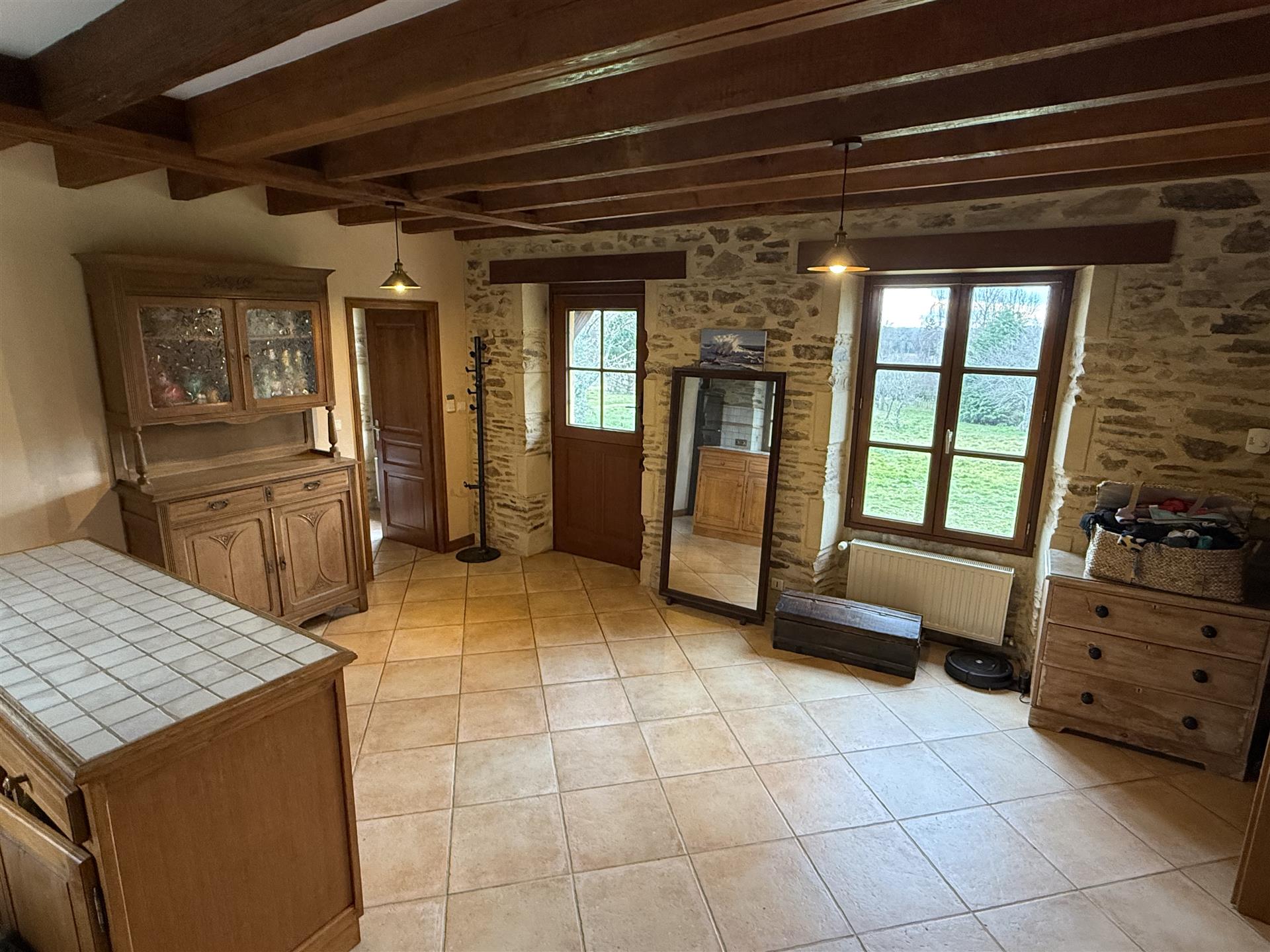 A22494lnh24 - Located in the lovely village of Jumilhac-le-Grand, this super property has many amenities within walking distance. These include, a bar, a restaurant, a butcher’s shop, a bakery, a grocery store, a pharmacy, and of course the splendid Chateau-de-Jumihac in the nearby central square. A drive of 10 mins brings you to the small town of La Coquille where you will also find a small supermarket, a train station, doctors, vets, a garden centre and a train station. A 15 minute drive in the opposite direction brings you to St-Yrieix-la-Perche where the vast majority of your daily needs will be met.The property benefits from:- Single floor living- Oil-fired central heating- Wood-burning stove- Rear balcony/terrace- Connected to Mains drainage- Garage- Private garden- Close to amenitiesKITCHEN (3m x 4,6m = 13,7m2)This bright country-style kitchen has a patterned tile splashback, and contrasting fitted and moveable units in greys and navy blues. Wooden work surfaces and a ceramic sink complete the country look.LOUNGE - Dining Room (31,3m2)Clean white walls give a crisp contrast to the stone hearth with its wood burning stove and attractive parquet flooring. Double glass-panelled double doors lead out to the rear Balcony (3,4m x 5,8m = 20m2) which overlooks the west-facing gardenGAMES Room / Bedroom 4 (3,1m x 4m = 12,4m2)Currently housing a pool table which may be available to purchase, this games room would also make a pleasant double bedroom looking over the garden at the rear of the house.BATHROOM (1,4m2 x 2,4m2 = 3,5m2)This ground-floor bathroom is equipped with twin sinks and a bath with a shower placed overhead. A separate Wc is across the hallway, also on the ground floor.BEDROOM 1 (18,4m2)The largest bedroom of the property with additional benefit of a Dressing Room (...). Two further double bedrooms look out to the front of the property:BEDROOM 2 (3,5m x 3,3m2 = 11,6m2)BEDROOM 3 (3,4m x 3,5m = 11,9m2)SHOWER Room (8m2)Spacious washroom with a shower cabinet, a sink and a toilet. Sous-Sol / Basement (76,1m2)Covering the full footprint of the property, the basement houses the oli tank and central heating bolier, as well as giving plenty of workshop space and off-road parking which is accessible from the road.LANDTotal surface area of the plot is 436m2, with around three quarters of this area being garden, which is laid to lawn with a variety of flower beds.More photos available, all measurements approximate. Enquire today!BrochuresBrochure 1