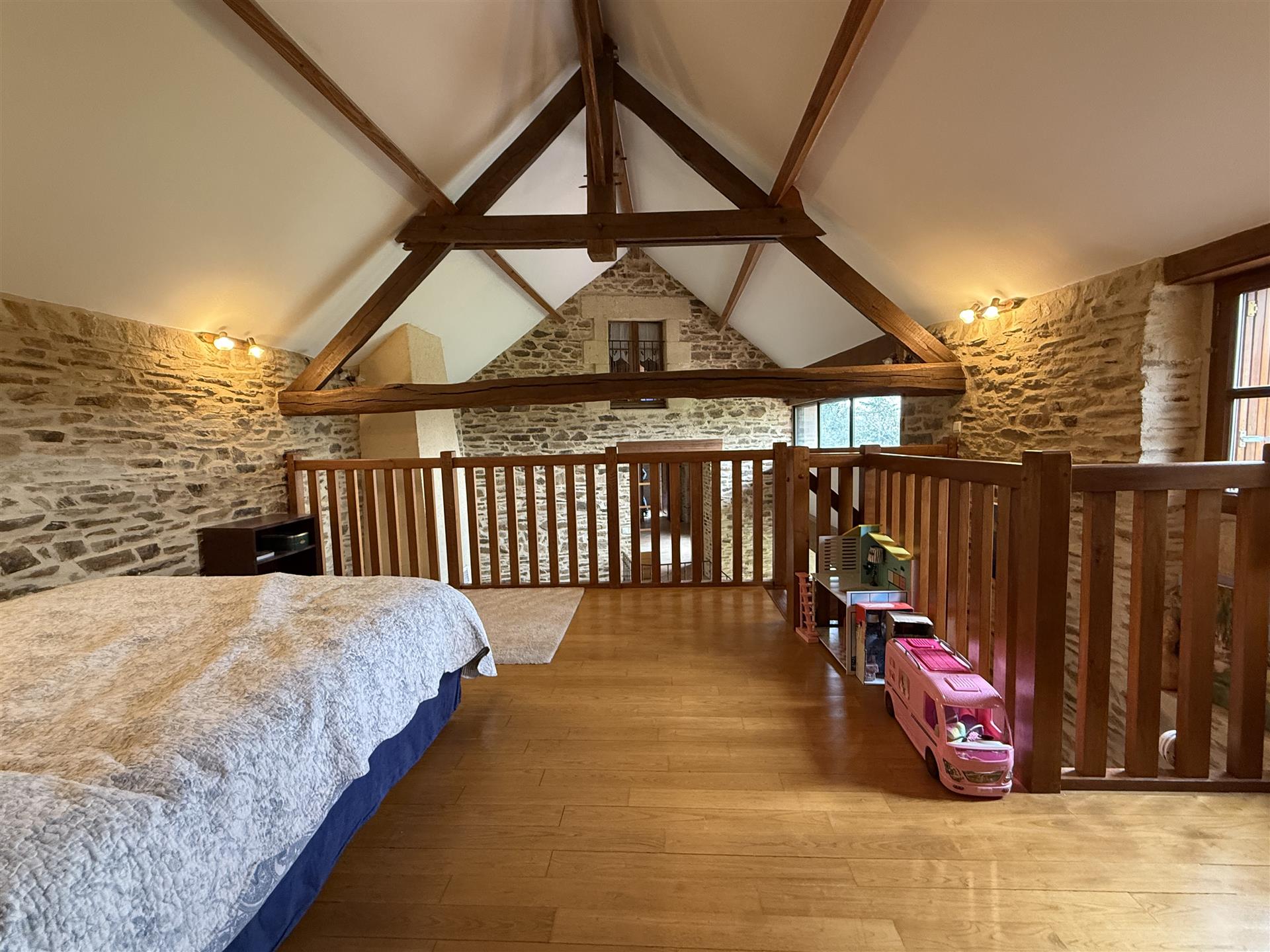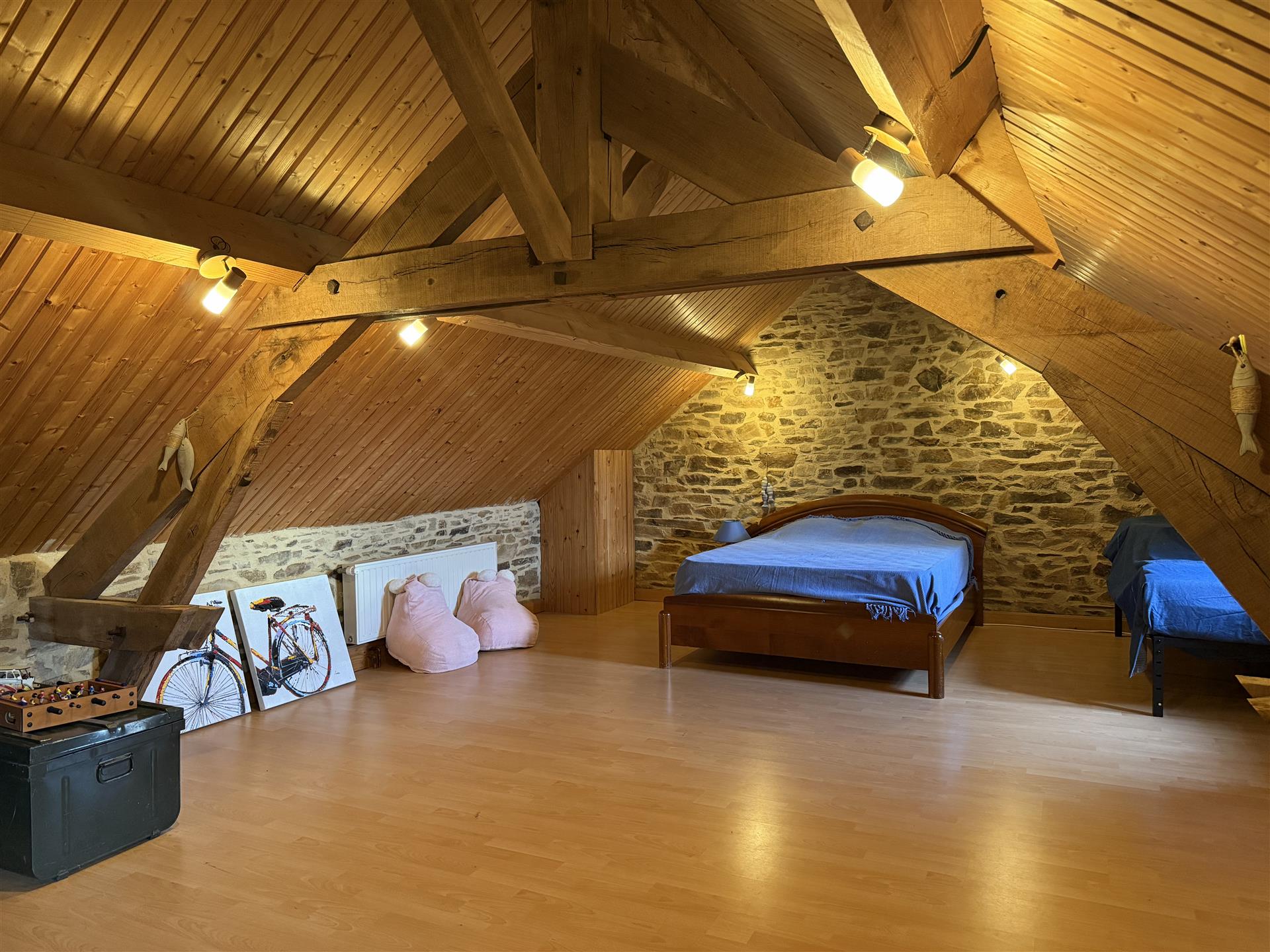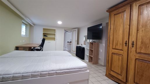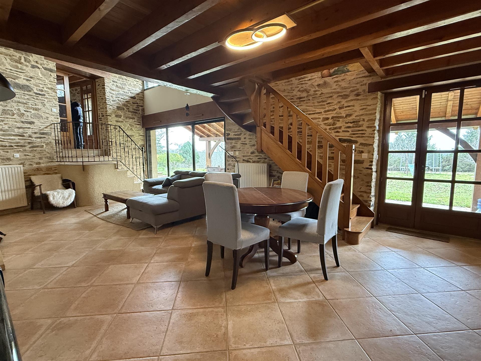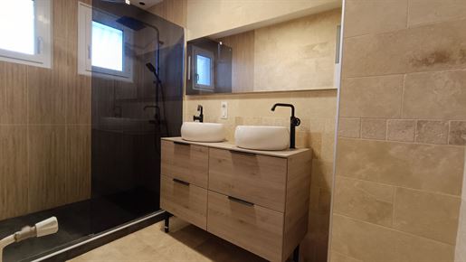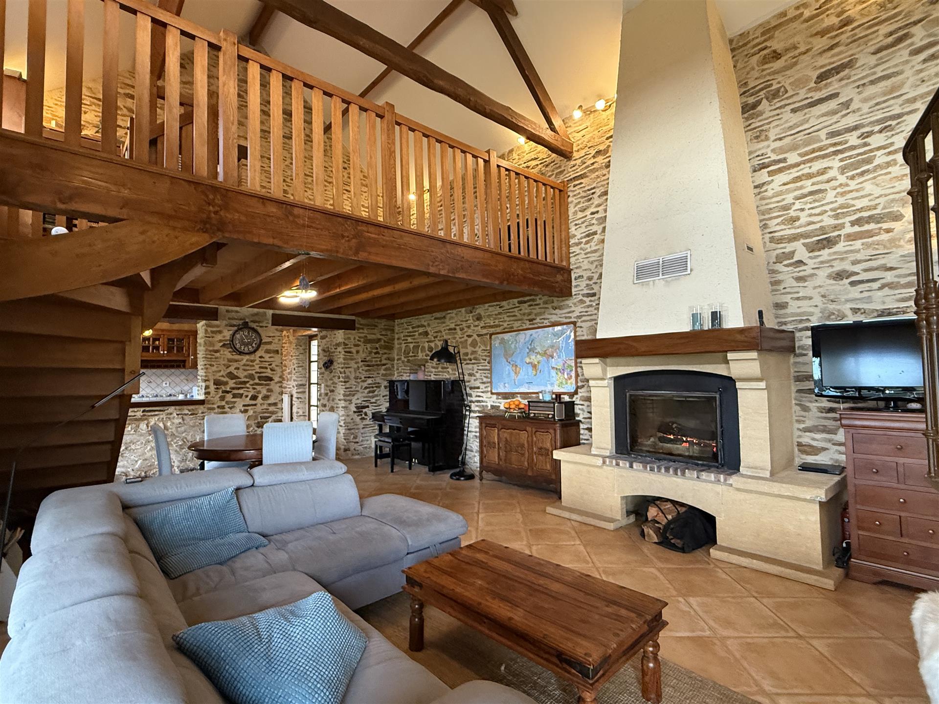A22494lnh24 - Located in the lovely village of Jumilhac-le-Grand, this super property has many amenities within walking distance. These include, a bar, a restaurant, a butcher’s shop, a bakery, a grocery store, a pharmacy, and of course the splendid Chateau-de-Jumihac in the nearby central square. A drive of 10 mins brings you to the small town of La Coquille where you will also find a small supermarket, a train station, doctors, vets, a garden centre and a train station. A 15 minute drive in the opposite direction brings you to St-Yrieix-la-Perche where the vast majority of your daily needs will be met.The property benefits from:- Single floor living- Oil-fired central heating- Wood-burning stove- Rear balcony/terrace- Connected to Mains drainage- Garage- Private garden- Close to amenitiesKITCHEN (3m x 4,6m = 13,7m2)This bright country-style kitchen has a patterned tile splashback, and contrasting fitted and moveable units in greys and navy blues. Wooden work surfaces and a ceramic sink complete the country look.LOUNGE - Dining Room (31,3m2)Clean white walls give a crisp contrast to the stone hearth with its wood burning stove and attractive parquet flooring. Double glass-panelled double doors lead out to the rear Balcony (3,4m x 5,8m = 20m2) which overlooks the west-facing gardenGAMES Room / Bedroom 4 (3,1m x 4m = 12,4m2)Currently housing a pool table which may be available to purchase, this games room would also make a pleasant double bedroom looking over the garden at the rear of the house.BATHROOM (1,4m2 x 2,4m2 = 3,5m2)This ground-floor bathroom is equipped with twin sinks and a bath with a shower placed overhead. A separate Wc is across the hallway, also on the ground floor.BEDROOM 1 (18,4m2)The largest bedroom of the property with additional benefit of a Dressing Room (...). Two further double bedrooms look out to the front of the property:BEDROOM 2 (3,5m x 3,3m2 = 11,6m2)BEDROOM 3 (3,4m x 3,5m = 11,9m2)SHOWER Room (8m2)Spacious washroom with a shower cabinet, a sink and a toilet. Sous-Sol / Basement (76,1m2)Covering the full footprint of the property, the basement houses the oli tank and central heating bolier, as well as giving plenty of workshop space and off-road parking which is accessible from the road.LANDTotal surface area of the plot is 436m2, with around three quarters of this area being garden, which is laid to lawn with a variety of flower beds.More photos available, all measurements approximate. Enquire today!BrochuresBrochure 1