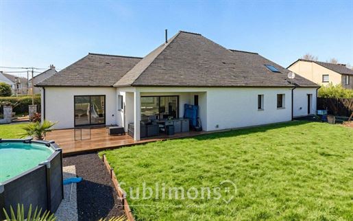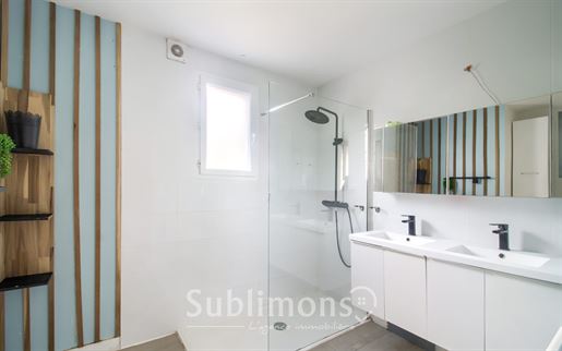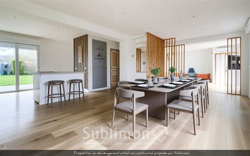 Dès l'entrée, vous serez conquis par la lumière naturelle qui baigne chaque pièce, illuminant ainsi votre quotidien. Le rez-de-chaussée abrite une cuisine aménagée et équipée, véritable coeur de la maison, qui invite à la convivialité et à la créativité culinaire. Le spacieux salon-séjour, chaleureux et accueillant, est idéal pour des moments de partage en famille ou entre amis. Ce niveau comprend également une chambre, un bureau, une véranda inondée de lumière naturelle, un Wc, une salle de douche et deux garages attenants à la maison.