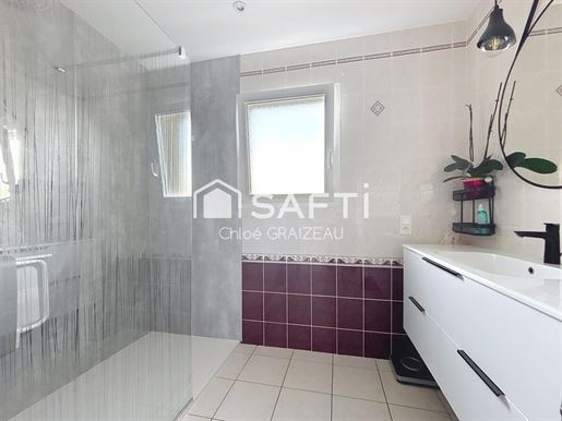 Idéalement située dans la commune de L’Absie, à proximité immédiate de toutes les commodités, à 12 minutes de La Châtaigneraie, 30 minutes de Bressuire et Parthenay, et 45 minutes de Niort et du Puy-du-Fou, cette maison de plain-pied aux prestations haut de gamme offre 121 m² de surface habitable et est édifiée sur une parcelle de 919 m², entièrement close et aménagée, exposée plein sud. Elle se compose d’un séjour lumineux avec placard, ouvert sur une cuisine de qualité (2023), entièrement aménagée et équipée (four, micro-ondes, plaque à induction, hotte, lave-vaisselle et réfrigérateur), d’une buanderie aménagée, d’un bureau, d’un Wc avec lave-mains, et d’un couloir desservant trois chambres, toutes équipées de placards aménagés, ainsi qu’une salle d’eau rénovée en 2023 (douche à l’italienne, vasque, placard, sèche-serviette). Les sols du séjour, du couloir et du bureau ont été récemment remplacés par un parquet moderne, apportant une touche chaleureuse et contemporaine à l’ensemble. La maison dispose également d’une cave enterrée et d’un double garage avec grenier et portails électriques. L’Extérieur, entièrement clos et aménagé, offre une terrasse de 48 m² avec pergola bioclimatique (2024), un accès bitumé fermé par un portail motorisé, ainsi qu’un abri de jardin. Atouts : • 12 panneaux solaires (2024) en autoconsommation avec revente du surplus • Ballon thermodynamique (2024) • Chauffage au sol électrique • Menuiseries alu et Pvc double vitrage • Volets électriques solaires et centralisés, avec moustiquaires intégrées • Isolation des combles (2017) • Assainissement collectif, tout-à-l’égout (conforme) Les informations sur les risques auxquels ce bien est exposé sont disponibles sur le site Géorisques : Prix de vente : 249 900 € Honoraires charge vendeur Contactez votre conseiller Safti : Chloé Graizeau, Tél. : , E-mail : - Ei - Agent commercial immatriculé au Rsac de Niort sous le numéro 839 179 561