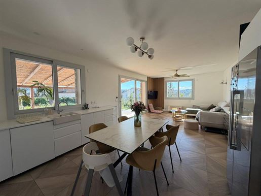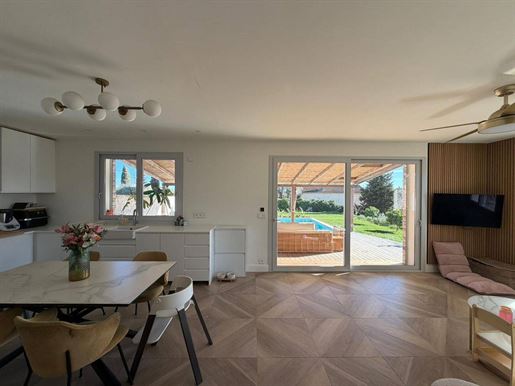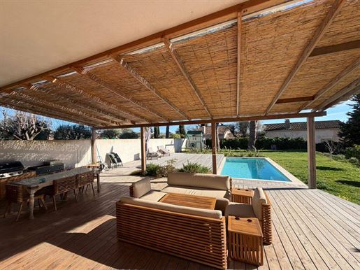 Édifiée sur un terrain paysager de 1 500 m², la propriété offre de superbes volumes intérieurs, une luminosité traversante, et des prestations de qualité. Le jardin, parfaitement entretenu, accueille une piscine au sel, un espace détente, et plusieurs coins ombragés propices au repos.