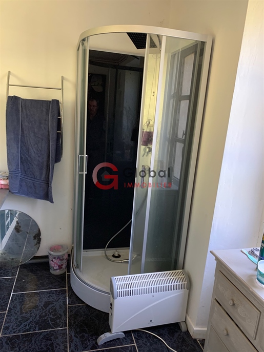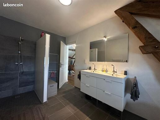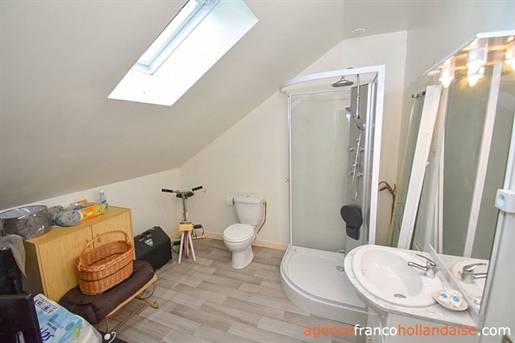 Au 1er étage, les combles ont été en partie aménagés en un palier d'environ 4,5m² desservant une salle d'eau avec Wc d'un peu plus de 5m² avec Vélux, dont la cabine de douche est à finir d'installer, et une 3ème chambre d'environ 15m² avec Vélux. La partie aménagée du grenier est isolée avec de la laine de verre sous la toiture et les murs. Il reste une partie du grenier à aménager et isoler, pour une surface d'un peu moins de 30m².