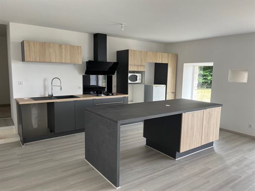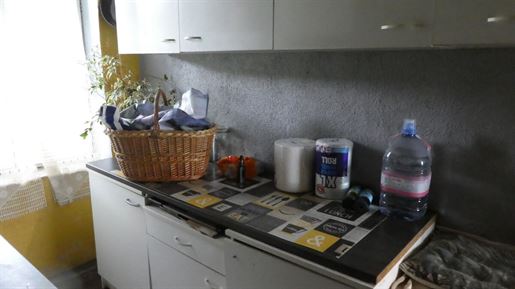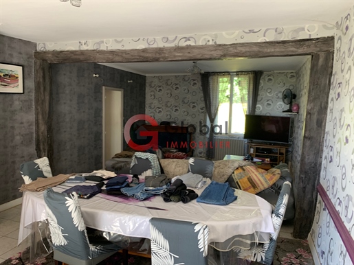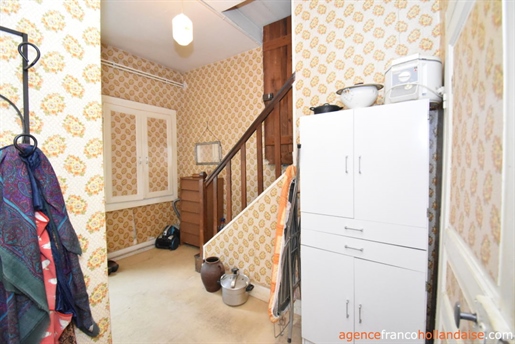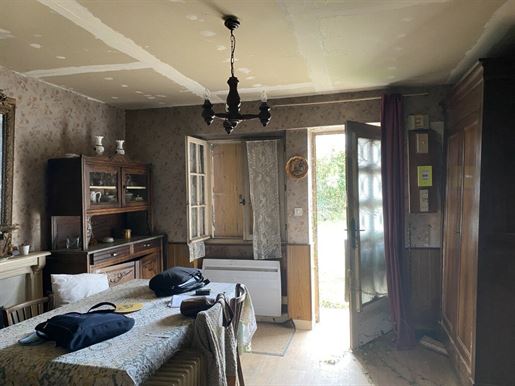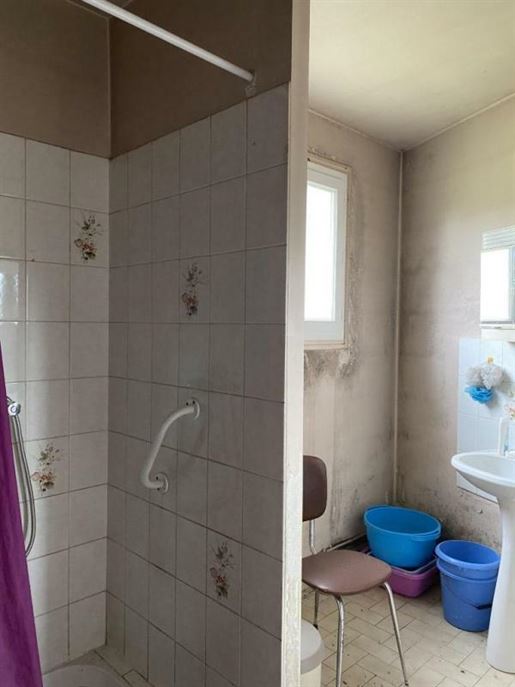 L'habitationOrientée au sud-ouest, la maison est élevée en partie sur une cave, la partie cuisine étant, elle, sur le terre-plein. Un petit perron mène à l'entrée de 9m² environ avec la cage d'escalier. A gauche de l'entrée, la cuisine carrelée et aménagée de plus de 13m². Elle comporte une cheminée, à laquelle une cuisinière au bois est actuellement raccordée. Une porte donne sur un salon/salle à manger de 13,5m² environ avec plancher hourdis carrelé. A droite de l'entrée, une chambre de plain-pied d'environ 15,5m² avec placards intégrés et plancher recouvert de Lino. Au fond de l'entrée, un Wc séparé est placé juste à côté de la salle d'eau équipée d'une cabine de douche et d'un lavabo. Juste à côté de celle-ci, on retrouve une seconde chambre d'un peu plus de 14m², elle aussi avec placards intégrés et plancher recouvert de Lino.