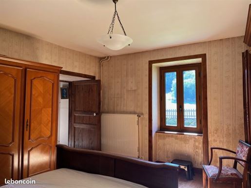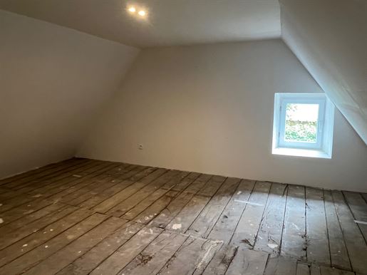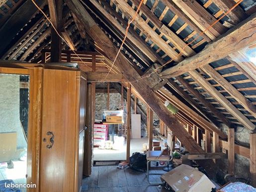 La ferme d'origine datant d'avant la 2nde guerre mondiale, on n'a pas ici de bâtiment agricole plus moderne et moins gracieux, mais plutôt deux belles granges pour une surface au sol d'environ 160m². La vieille maison à rénover d'environ 35m² au sol, est composée de 2 pièces, dont une sur cave au rez-de-chaussée et un grenier aménageable au-dessus. La façade avant a été rejointée, ce qui lui donne un très joli cachet. Le sol de l'ancienne cuisine a conservé son magnifique sol en pisé typique de la région, que les propriétaires ont bien rénové. La grande cheminée en pierres a été rejointée, ainsi que les murs intérieurs et les enduits des anciens torchis des cloisons ont été réparés. Vraiment très mignon ! L'endroit se prêterait à la création d'un gîte pour les amis ou la famille en visite, après que les permissions nécessaires auront été accordées, bien évidemment. Il faudra également prévoir une seconde fosse septique.