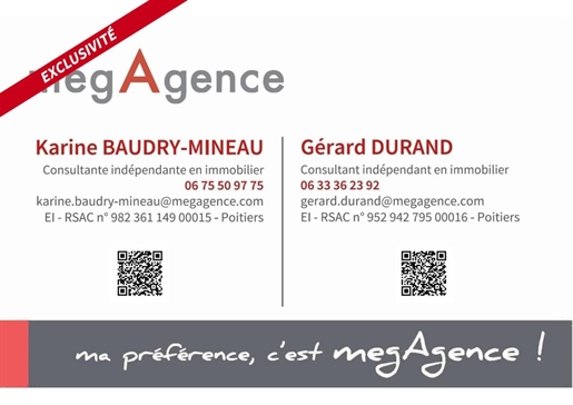 Prix affiché avec frais d'agence. Possibilité de vente sans passer par agence immobiliére. Ensemble immobilier située dans un environnement calme sans vis à vis. Maison et dépendance entierement de Plein Pied D'autres photos possible sur simple demande par mail ou sms. (Malheureusement, si j'envois les photos par le biais du bon coin, ses dernières se mettent automatiquement à l'envers d'où la demande de mail ou de téléphone portable). Composé d'une maison principale de 145m2 et d'une dépendance de 70m2 sur 1 hectare de terrain avec marre (carpes coyes, amours blancs, carpes) située à La Puye (86260) à quelques minutes de Chauvigny (10-12mn). 25Km de Chatellerault, 35km de Poitiers. Maison principale de 145m2: Elle se compose d'un joli salon chaleureux, d'une cuisine moderne sous une véranda, offrant une belle luminosité et une vue agréable sur l'extérieur. 3 chambres spacieuses, avec la possibilité d'aménager une quatrième. 1 grand dressing de 6m3 (2x3ml). Les plus: -Système de chauffage de l'eau de la piscine au bois, -Micro station installée en 2016 (entretien effectué chaque année). Facture d'eau réduite (de moitié comparé au tout à l'égout) car pas d' assainissement à payer. -Pompe à chaleur air/eau, -Cheminée avec insert + répartiteur, -2 Poeles a granulées (1 dans la maison principale et 1 dans la dépendance), -Adoucisseur (entretien effectué chaque année), -8 Panneaux solaires en autoconsommation avec batterie et revente du surplus, -Prise recharge véhicule éléctrique -3 cuves avec système de récupération d'eau de pluie de 1000L chacune. À l'extérieur, profitez d'un espace détente exceptionnel : -une piscine 9 x4.5 chauffé au bois, -un Spa Eva , 900 litres, -1 grande serre, -1 verger avec de nombreux arbres fruitiers (pêches, pommes, vignes, poires, prunes, cerises, coings, etc...), -10 000m2 de terrain avec de nombreux arbres (Pawlonias, Chênes, Cataplas, Erable, Noyers, Sapins, Figuier, noisettier, etc...) Le Bien est composé également d'une dépendance de 70m² avec 2 grandes chambres de 21m2 chacunes, une salle d'eau et un coin cuisine idéale pour recevoir des amis, votre famille ou pour un complèment de revenus. Chauffage principale: Poêle à granuler. 1 Garage/Atelier d'environ 70m2.
