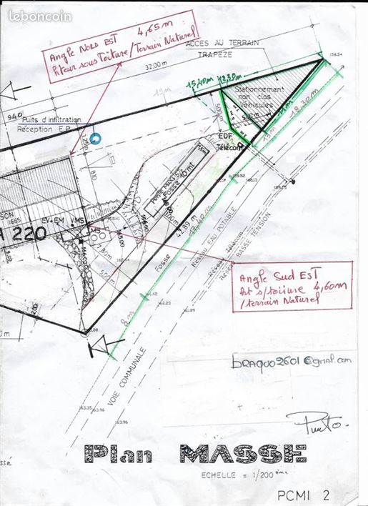 Terrain Constructible de 906 m² dans ce quartier résidentiel espacé (en diffus), à 2,5 km du centre de 07800 Charmes-sur-Rhône et St Georges les bains, . «Prêt A Construire » grâce au permis Libre De Constructeur. (Gain énorme de temps sans autre démarche). Future maison sans vis à vis. Besoin d’un assainissement individuel. Situé quartier de «Suze», cadastrée Za 220, bordée par un terrain boisé en Zone Naturelle. Terrain en surplomb d’un chemin communal très peu passant, avec vue, en pente moyenne, d'ou maison avec sous sol, laissant l'espace de vie en rez de jardin. Maison exposée Sud. Tous les réseaux sont sur le chemin communal (eau potable, électricité, téléphone, internet et Fibre). Viabilisation en cours. Lieu paisible, à proximité parcours pédestres et de randonnées, balades à vélo, à cheval... À seulement 10 minutes des grands axes routiers, des villes pour le travail, les soins, ou hôpitaux. Toutes Commodités et loisirs se trouvent au village (commerces, écoles, médecins, dentistes, pharmacie, infirmiers, station essence, ramassage scolaire, Gymnase, terrain de sport, piscine, salle des fêtes) 15 000€ déjà investis que vous n'aurez pas à débourser en plus du prix d'achat du terrain pour : - Plans maisons réalisés - Etudes obligatoires (G2) de contrôles de sols, matériaux et bâtiments, concernant la future construction avec la Certification de conformité et de Contrôle aux dernières normes (Re2020). - L’attestation certifiée conforme du Spanc pour l’assainissement individuel. - Création faite du chemin d’accès à la maison. - Création faite d'un parking extérieur en bord de route de 2 voitures (devenu obligatoire) - Viabilisation Eau et Edf (en cours) Le permis de construire consiste en une Maison d'environ 113 m² habitable (3 chambres, une grande pièce de vie, salle de bain et Wc, local technique) sur un sous-sol semi-enterré (double garage + vide sanitaire) laissant l'espace de vie en rez-de-jardin. Agence, Merci de s’abstenir.