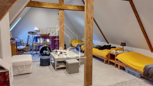 Les étages accueillent six chambres spacieuses, dont une suite, idéales pour recevoir famille et amis. Sous les combles, un espace chaleureux aux volumes généreux peut être aménagé selon les envies : dortoir, salle de jeux ou pièce de détente.