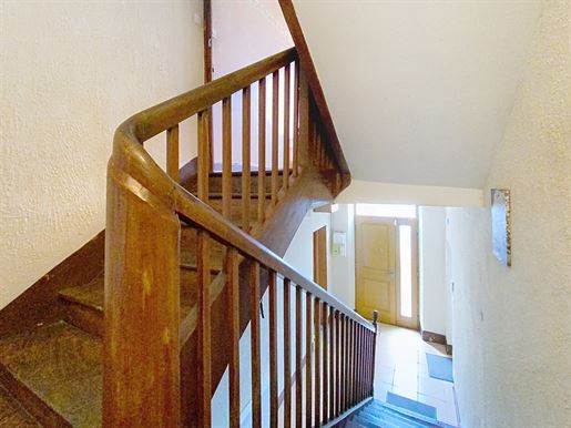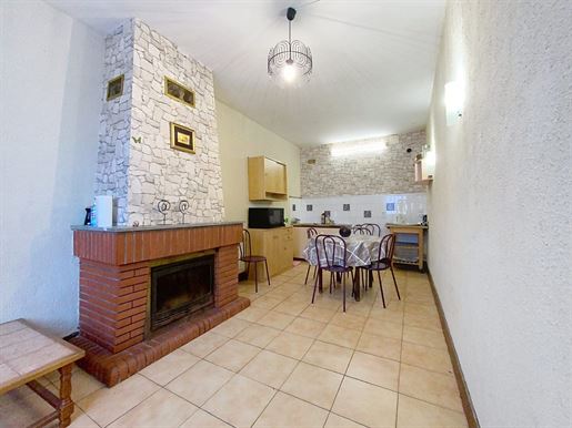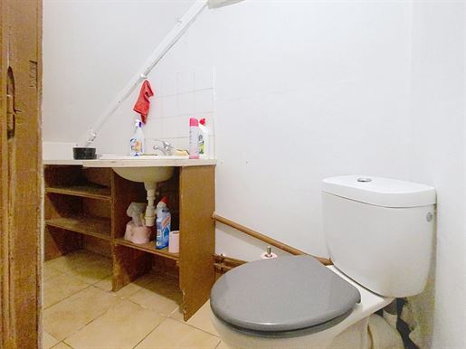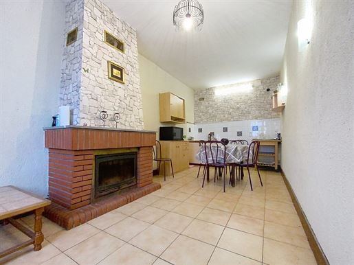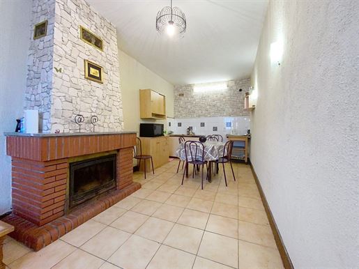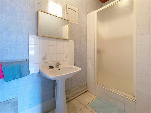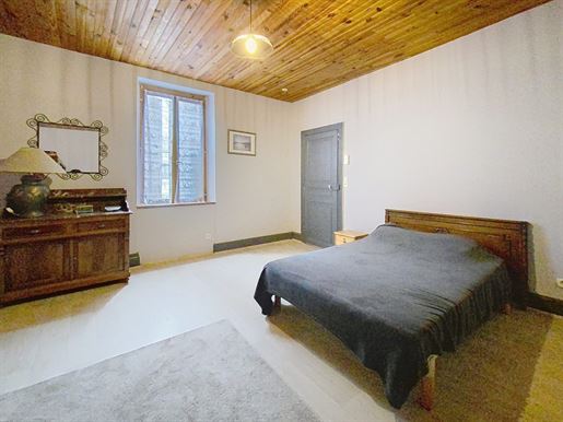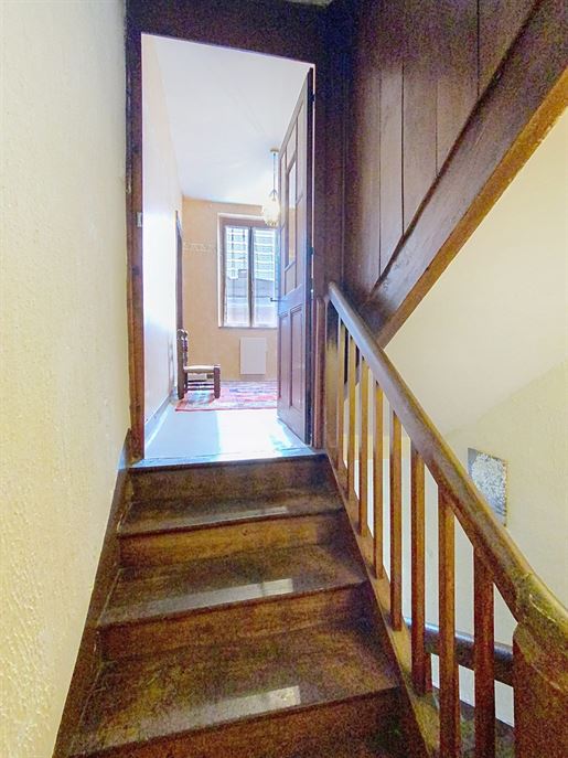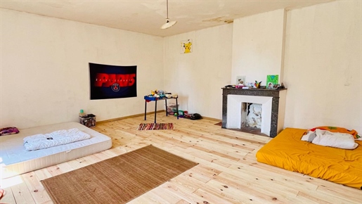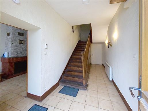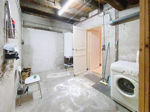 Au rez-de-chaussée, une grande cuisine conviviale s'articule autour d'une imposante cheminée ancienne dans laquelle un poêle à bois diffuse une chaleur douce. Une salle à manger accueillante, un salon baigné de lumière, une buanderie et une salle d'eau (à terminer de rénover) complètent cet espace de vie chaleureux.
