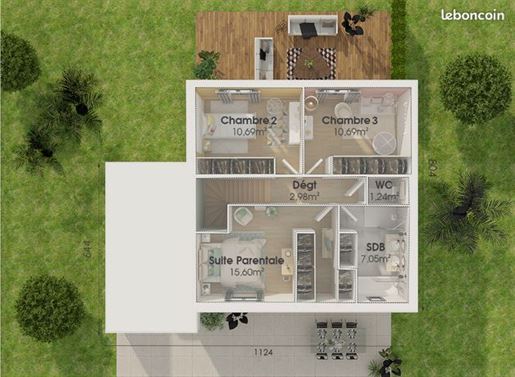 Projet de construction d'une maison 156 m² avec terrain à Labourgade (82) au prix de 360233€ Labourgade – Maison Oeil De Tigre. Dans un quartier paisible, à la fois très bien exposé mais aussi proche des commerces et services, cette parcelle de notre partenaire foncier, sous réserve de disponibilité, de 2158 m², pourrait accueillir votre projet ! Villas et Maisons de France, constructeur régional expérimenté et avec un process de haute qualité environnementale, est spécialiste de la maison éco responsable sur-mesure. Notre spacieuse maison “Oeil de Tigre” de 156m², allie à la perfection élégance, fonctionnalité et luminosité. Au rez-de-chaussée, une pièce de vie lumineuse de 52,81m² harmonise le séjour et la cuisine, créant un espace convivial. L'espace nuit comporte 4 chambres, dont une suite parentale, avec une salle de bains commune pour les autres chambres. Complétée par une terrasse de 28,56m², un garage de 27,50m² et un cellier de 6,72m² attenant à la cuisine, la maison est conçue pour la praticité. Un porche de 2m² se métamorphose en toiture-terrasse à l'étage. À ce niveau, une seconde suite parentale, avec dressing et salle de bainss privative, s'ouvre sur sa propre toiture-terrasse de 26,79m². Ainsi, la Maison “Oeil de Tigre” offre un espace de vie raffiné, combinant harmonieusement espaces privés et espaces conviviaux. Certifié Properméa et Haute Qualité Environnementale, Villas et Maisons de France s'engage à réduire l'empreinte carbone de votre projet. Nous garantissons et contrôlons la conformité avec la Re 2020, l'étiquette énergie A, ainsi que la qualité du traitement de l'étanchéité à l'air, le tri sélectif et la valorisation des déchets. Votre interlocuteur dédié vous accompagnera dans toutes les étapes de votre projet, que ce soit pour le financement, l'obtention du permis de construire, ou l'acte authentique d'acquisition du terrain. Dès le début de votre chantier, suivez en temps réel et en images l'avancement de vos travaux grâce à votre Espace Client Privilège. Notre Contrat de Construction de Maison Individuelle vous garantit une construction sûre et durable, avec la Garantie de Livraison, l'Assurance Décennale Dommages Ouvrage, la Garantie de Parfait Achèvement et Biennale. Pour concrétiser votre projet, contactez Patrick Berdin au O6 , et choisissez l'alliance entre le calme et la praticité, au cœur d'une maison moderne et chaleureuse 100% personnalisée. Contactez Patrick Berdin au O6 ou au O5 (Villas et Maisons de France). Prix avec assurance dommages-ouvrage comprise, Vrd non compris, terrain viabilisé, frais de notaire non compris, frais divers non compris. Terrain sélectionné et vu pour vous sous réserve de disponibilité et au prix indiqué par notre partenaire foncier. Plans contractuels, visuels non contractuels. Réf. Tmpbeb8621 Cette annonce a été créée et diffusée avec le logiciel Vitahome. Référence annonce : mander plus d'informations
