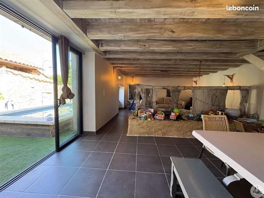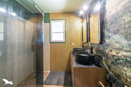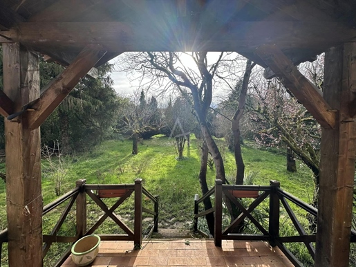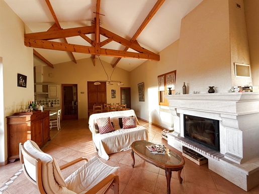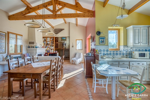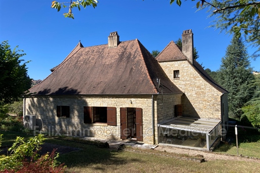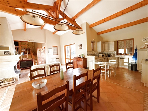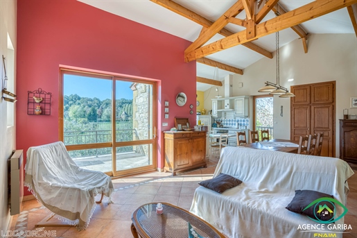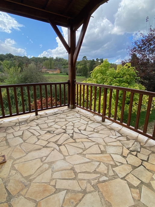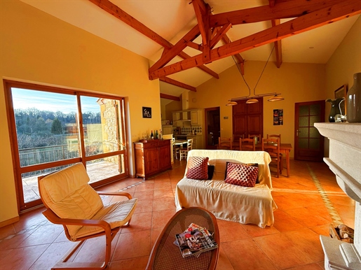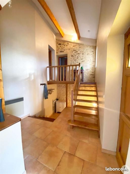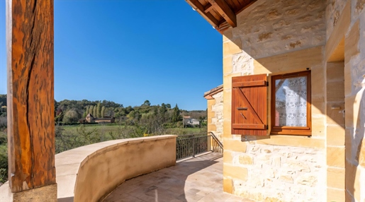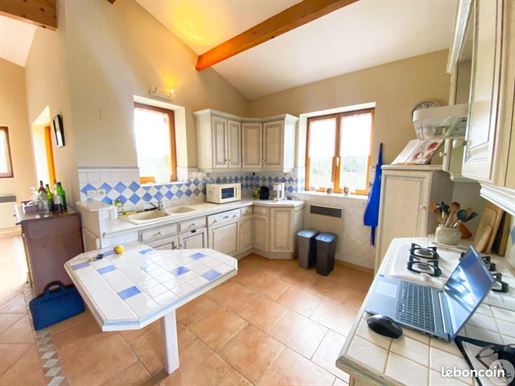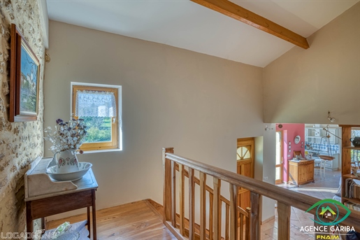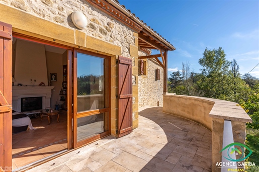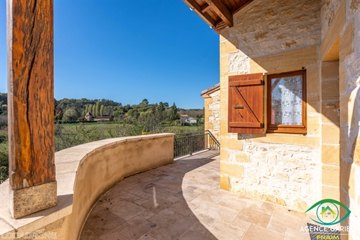 Maison en pierre proche de Biron Une maison en pierre du Lot avec une vue dégagée construite en 1999, avec une suite parentale, 2 chambres, 2 salles d'eau, un garage en sous-sol. Terrain de 2000 m2 environ. Une maison construite en 1999 et une autre partie en 2009, avec une surface habitable de 110 m2 environ comprenant : - Une terrasse couverte servant de perron d'entrée. - Une entrée dans une séjour/salle à manger/cuisine de 31,6 m2 environ et l'espace cuisine de 8 m2 environ. La cuisine est aménagée de placards haut et bas, carrelage au sol et faïence au dessus du plan de travail. Equipée d'un four, une plaque de cuisson au gaz, un lave-vaisselle, une hotte aspirante, un évier, un frigo. Le salon/salle à manger, carrelage au sol, une cheminée avec un insert, une baie vitrée ouvrant sur la terrasse au Sud avec travertin au sol. Belle hauteur sous plafond de 4,05 m environ. - Un dégagement de 1,4 m2 environ, carrelage au sol. - Une salle de bains de 4,2 m2 environ, avec une baignoire, un lavabo, des étagères, vmc, carrelage, et faïence aux murs. - Un wc séparé de 1,2 m2 environ, carrelage au sol, faïence aux murs, vmc. - Une seconde salle d'eau de 3,2 m2 environ avec une douche, un lave-mains, un sèche-serviette, vmc et carrelage au sol. - Un dressing ou bureau de 8 m2 environ, parquet flottant au sol. - Une chambre de 7,7 m2 environ, parquet flottant au sol. Un escalier en bois desservant l'étage, depuis le hall d'entrée. - Une chambre de 14,5 m2 environ, parquet flottant au sol, placards. - Une chambre de 16,5 m2 environ, parquet flottant au sol. Un escalier en béton desservant le sous-sol, depuis le hall. - Un sous-sol de 20,8 m2 environ, avec un lavabo. - Une cave de 4,8 m2 environ, gravier au sol. - Un garage de 23 m2 environ, sol cimenté, une porte de garage électrique. Eléments d'informations : - Taxe foncière : 1329 € - Assainissement refait en 2025 - Fibre installée - Menuiseries en bois avec double vitrage et volets en bois. - Chauffage électrique et bois. A l'extérieur : - Terrain de 2000 m2 environ arboré. - Une cave voutée en pierre. Référence annonce : 8562 Consommation énergétique : 328 kWh/m²/an Emission de gaz à effet de serre : 10 CO2/m²/an Le prix indiqué comprend les honoraires à la charge de l'acheteur : 6,00% Ttc du prix du bien hors honoraires Prix hors honoraires : 253 774 €