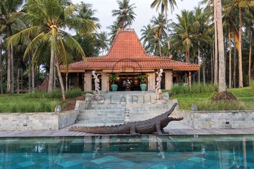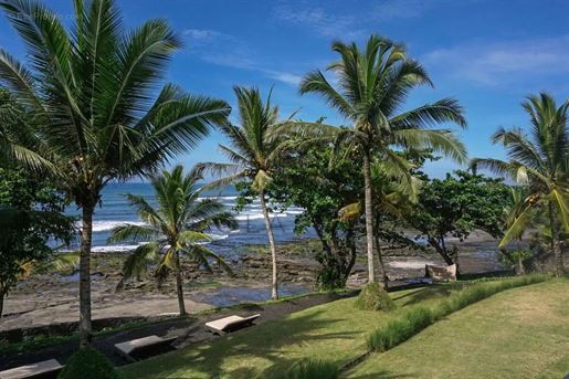 Imaginez-vous réveiller au son des vagues venant s’écraser sur une plage immaculée de sable noir, entourée de 17 000 m² de terrain privé rempli de hauts cocotiers et de jardins tropicaux luxuriants. Ici, sur le littoral préservé de l’ouest de Bali, se trouve une propriété unique — un sanctuaire qui célèbre l’héritage authentique indonésien tout en offrant chaque luxe moderne attendu par les acheteurs les plus exigeants du monde.