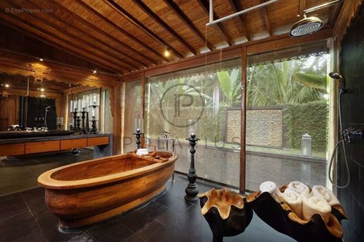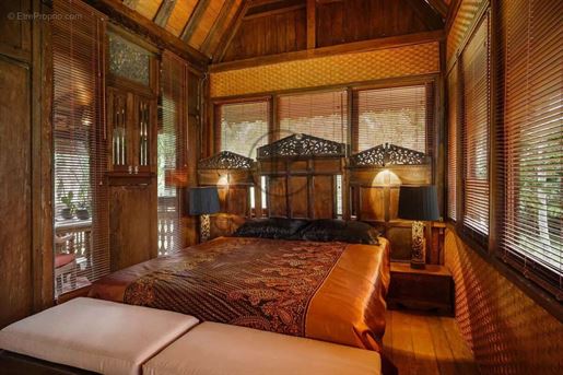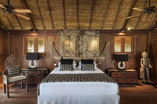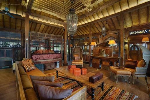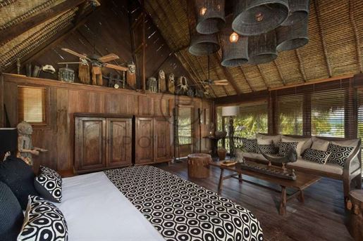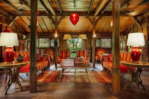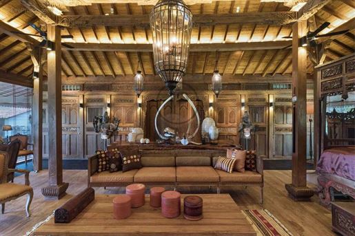 En franchissant les portes traditionnelles, vous entrez dans un monde privé, riche de culture et de beauté naturelle. Les terrains, s’étendant sur 170 ares, dévoilent des jardins paysagers, 280 cocotiers et des allées sereines menant à quatre résidences distinctes inspirées du patrimoine. Chaque maison est une œuvre d’art en soi, construite avec du teck et du bois de fer centenaires, conçue pour capter le rythme de la vie insulaire.