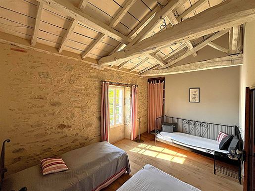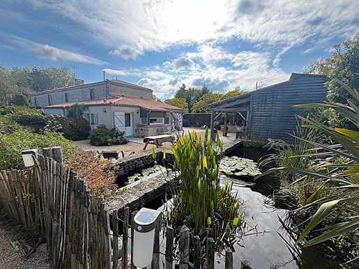 L'agence Beuve-Méry Immobilier vous présente cette élégante propriété nichée dans un environnement paisible au milieu d'un parc arboré, à seulement quelques minutes des Sables D'olonne. Sur un terrain de quatre hectares, l'ensemble immobilier, rénové avec des matériaux de qualité, offre de belles prestations et possède un réel cachet (pierres et poutres apparentes, beaux volumes). Il est composé d'un bâtiment principale constitué de deux maisons indépendantes (dont l'une d'elle est actuellement exploitée en gite), d'une grande dépendance comprenant un garage pouvant accueillir plusieurs véhicules, un atelier et différents espaces de stockage, de terrasses dont une agrémentée d'une cuisine d'été, et d'une piscine d'eau de mer chauffée. La maison principale (de plus de 220 m² habitables) se décline de la manière suivante: Vous trouverez au rez-de-chaussée un salon cosy, une salle à manger, une grande cuisine dinatoire aménagée et équipée, ainsi qu'une belle suite parentale avec salle de bain et dressing. Un bureau lumineux, une arrière-cuisine, une lingerie et une cave complètent harmonieusement ce niveau. A l'étage, deux chambres de 23 m² chacune, agrémentées de leur propre salle d'eau et Wc. La seconde maison d'environ 136 m² (actuellement exploitée en gite) se compose au rez-de-chaussée d'un salon chaleureux et son poêle à bois, donnant sur un bel espace salle à manger et sa cuisine ouverte, le tout sur plus 60m2. A l'étage trois chambres dont une suite avec salle d'eau privative, ainsi que deux salles d'eau supplémentaires. Un espace idéal pour recevoir famille, amis ou hôtes, dans un environnement calme et apaisant. A l'extérieur, la propriété offrant un cadre exceptionnel avec plusieurs terrasses, un magnifique espace piscine (chauffée et abritée sous un dôme pour en profiter toute l'année) et de nombreux jardin invite à la détente. Le terrain comprend également une magnifique peupleraie ainsi que de nombreuses places de parking situé de toute part de la propriété , une dépendance de plus de 200 m², complète le bien, parfaite pour le stockage ou un projet complémentaire. Possibilité de stationner un camping car. Chaque détail a été pensé pour créer un lieu de vie unique, où authenticité et confort moderne se rencontrent dans une parfaite harmonie. Cette propriété pourra séduire aussi bien une famille en quête de résidence principale qu'un projet de maison d'hôtes ou de gîte haut de gamme, grâce à ses prestations et à son environnement privilégié. Appel D'offres A Prix Progressif : les propositions seront reçues en ligne sur la plateforme Immofit, jusqu'au à 20h (Europe/Paris). Le prix affiché sur la présente annonce correspond à un prix de première proposition possible, honoraires de négociation inclus, et les participants pourront soumettre leurs propositions par paliers progressifs minimums de 10000 euros, jusqu'à l'heure de clôture de l'appel d'offres interactif (précisée ci-dessus). La participation à l'appel d'offres est soumise à agrément préalable. Toutes les propositions seront transmises au vendeur, lequel restera libre dans la sélection de celle à laquelle il entend donner suite, à tout moment. Une proposition en ligne pendant l'appel d'offres interactif ne constitue pas une offre ferme et précise au sens de l'article 1114 du Code Civil, mais une intention d'achat. Nous sommes à votre disposition pour toutes demandes d'information complémentaires ou pour organiser une visite (visite virtuelle disponible sur demande). (4.31 % honoraires Ttc à la charge de l'acquéreur.)