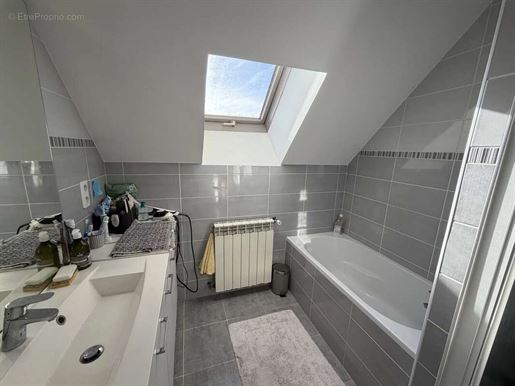 Une grande terrasse vous accueille dès l’entrée. En franchissant la porte principale, vous découvrez un vaste salon-salle à manger (52 m²) , baigné de lumière, avec une cheminée imposante qui structure l’espace. De là, vous accédez d’un côté à la véranda (21,62 m²) , véritable pièce de vie ouverte sur l’extérieur, et de l’autre aux escaliers menant à l’étage. Sur la gauche, la cuisine séparée (17 m²) très lumineuse profite elle aussi d’une vue dégagée sur le jardin et la terrasse grâce à deux accès directs sur l'extérieur. Toujours au rez-de-chaussée, vous trouverez une salle de bains (10 m²) avec baignoire et douche, ainsi que des toilettes indépendantes.