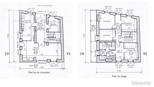 À l’étage, la distribution s’organise ainsi : une chambre sur la gauche (26 m²), deux autres sur la droite (11 et 10 m²) , dont une en enfilade. La chambre du fond dispose en complément d’un coin d’eau privé avec Wc, bidet et lavabo.