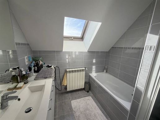 Côté équipements, la maison est chauffée par une chaudière Wiessmann au fioul avec production d’eau chaude, et complétée par une cheminée à foyer ouvert. La toiture est en tuiles, la charpente traditionnelle, les menuiseries sont en Pvc double vitrage, sauf dans la cuisine où subsistent des fenêtres en bois simple vitrage. L’Assainissement est individuel par fosse septique.