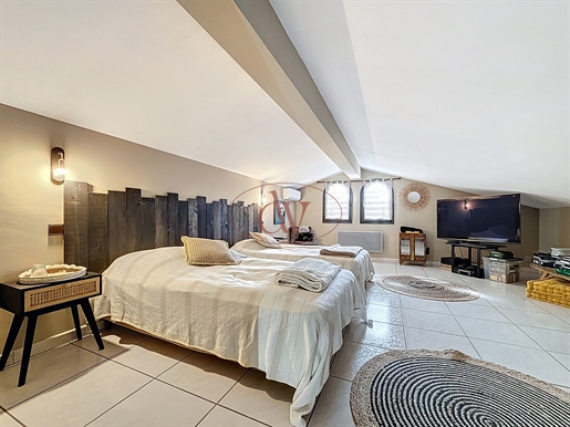 Le bien est équipé: du double vitrage, de volets roulants électriques, d'une alarme, de la climatisation réversible et gainable à l'étage, d'un récupérateur d'eau de pluie, d'un portail électrique et d'une porte de garage motorisée. La maison est construite sur un vide sanitaire.