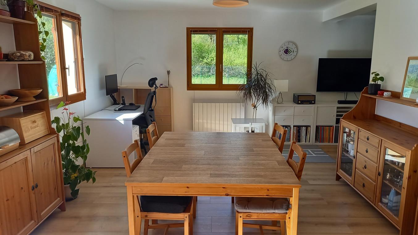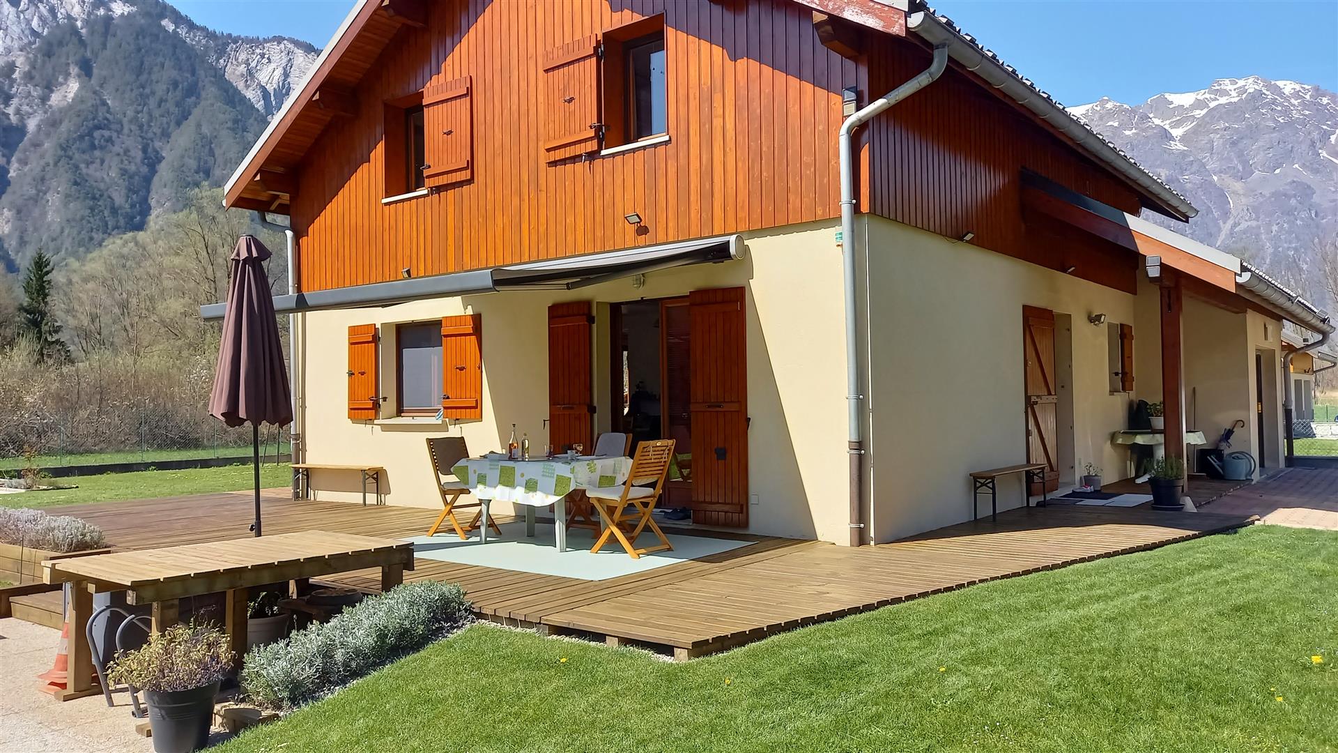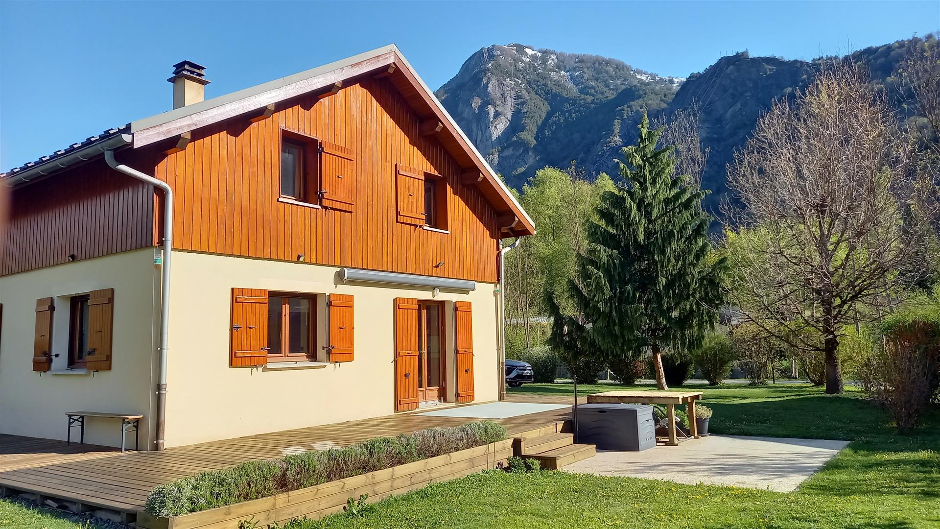 Maison de plain-pied construite par des entreprises locales en 2000 située dans un secteur très recherché, calme et ensoleillé orientée sud-est (soleil du matin) / sud-ouest (soleil de l’après-midi) avec vues dégagées (Ecrins, Taillefer…) ; maison construite sur vide sanitaire avec deux niveaux, très bien entretenue et soignée, fonctionnelle et lumineuse surface habitable de 129m² + 45m² de dépendances (garage, mezzanine, abri de jardin) + cage d'escalier ; 2 modes de chauffage (radiateurs à inertie fluide + poêle à bois Jotul récents) en rdc : cuisine ouverte sur salon (poêle à bois) + hall d’entrée + wc à l’étage : 3 grandes chambres + sdb + wc + hall. Bilan énergétique classe D (mars 2025). Etude solaire (mars 2025) validant la possibilité d'installer 10 panneaux photovoltaïques (4500 kwh de production annuelle garantie).