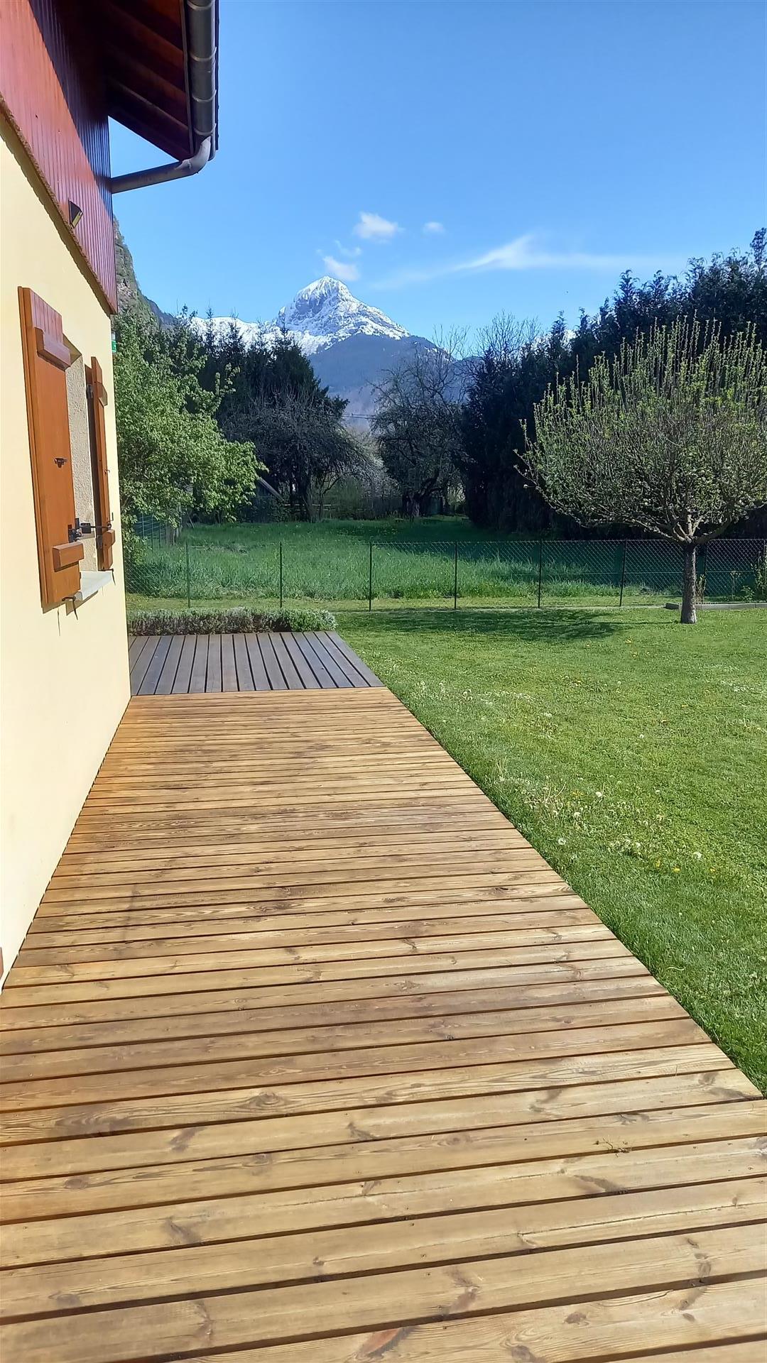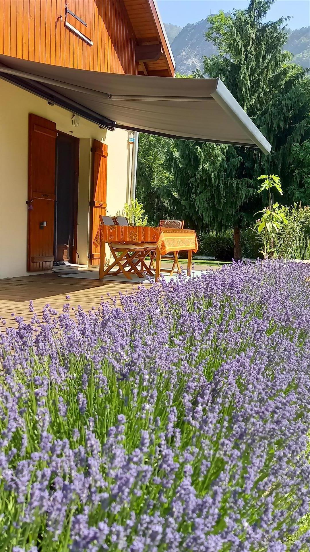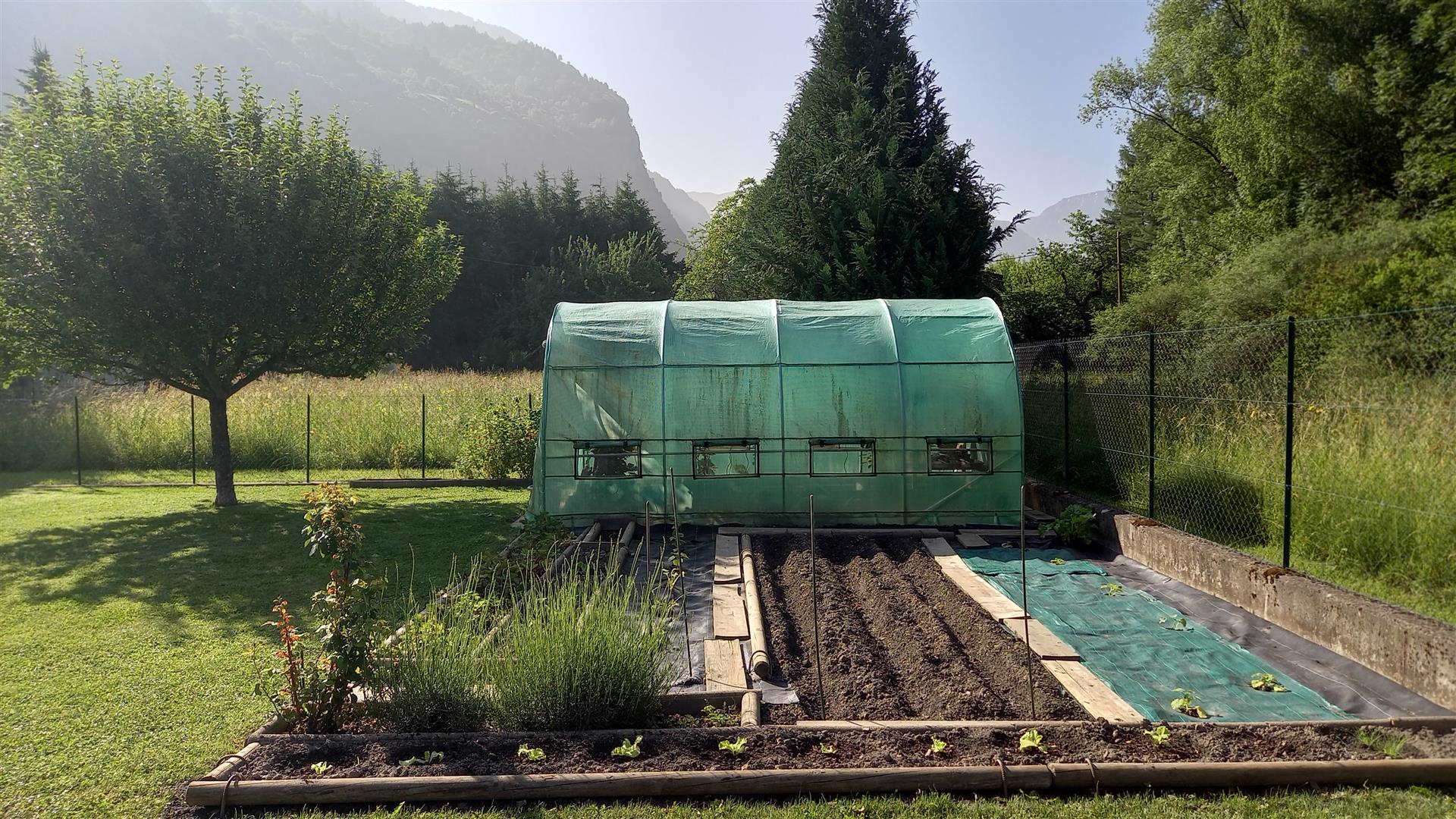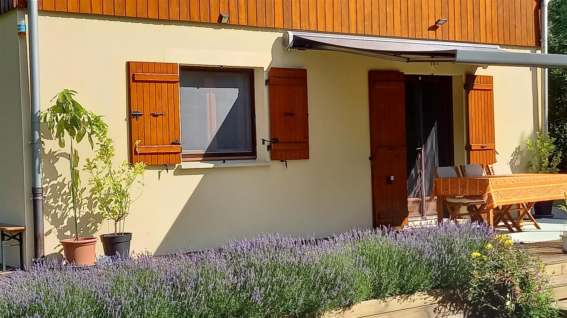 Terrain d’environ 1130m², plat avec pelouse et potager (serre), arboré (érable, arbres fruitiers...) avec coin déjeuner sur l'herbe pour les journées chaudes d'été . Maison entourée de terrasses lames de bois (73m² dont 10m² couverts sous auvent) et de deux terrasses en dalles gravillonnées (35m²) dont une permet d’installer une piscine « hors sol » (3mx4m) en connexion directe avec la terrasse bois offerte avec l'achat de la maison. Lavandes en bordure de terrasse principale.