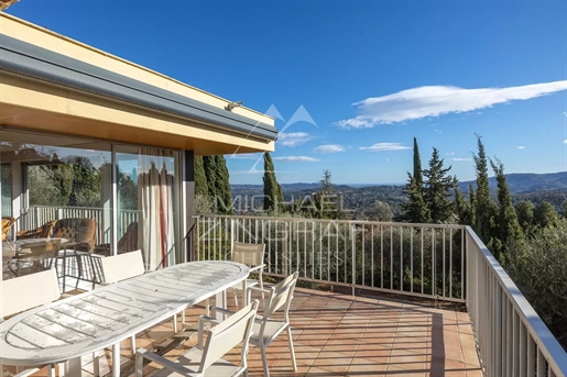 Située sur les hauteurs du Tignet et bénéficiant d'une très belle vue panoramique sur la mer et le lac de Saint-Cassien, cette belle villa traditionnelle de 216,55 m² est édifiée sur une parcelle de 1989 m² avec piscine, complantée d'oliviers et de fruitiers.