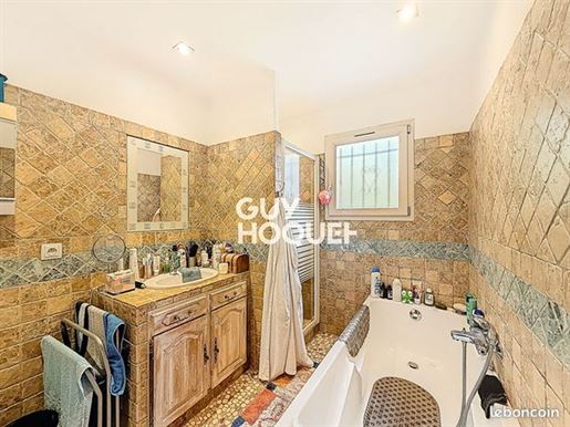 Prestations et équipements : assainissement fosse septique (non conforme / raccordable au tout-à-l'égout), huisseries double vitrage bois, chauffe-eau électrique, chauffage électrique convecteurs et climatisation réversible, volets battants bois, terrasse couverte de 15 m², abri 2 voitures de 29,30 m², gouttières en zinc et aluminium, portail automatique avec visiophone, alarme Verisure avec caméra, débarras, piscine traditionnelle 10X5 au chlore avec nage à contre-courant, sous-sol de 19 m².