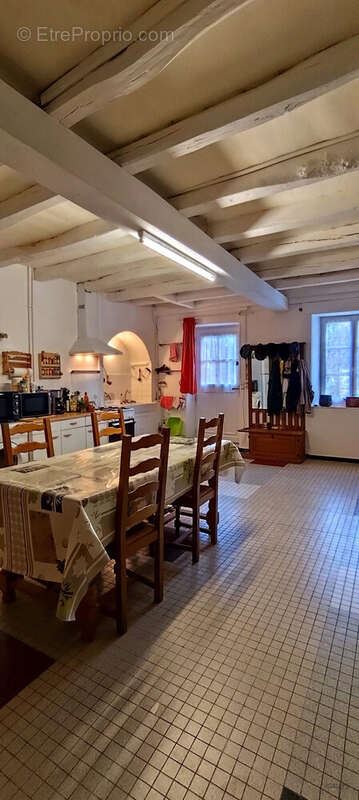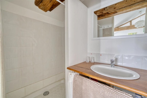 un cellier, une kitchenette et un Wc indépendant. A l'étage, se trouve une grande pièce de 20 m² servant de chambre, avec lavabo et douche.
