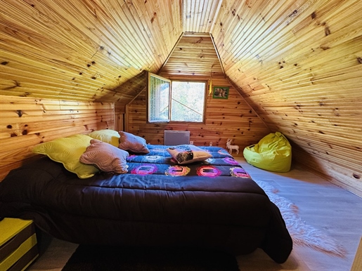 Je vends mon chalet situé dans un parc de vacances doté de 2 grandes piscines, restaurant, snack, terrains de tennis et autres équipements sportifs. Situé au bord du Parc naturel régional des Pyrénées Ariégeoises à Daumazan-sur-Arize, non loin du Mas d'Azil (20 km) et proche de Carla-Bayle (10 km). A 1 h de Toulouse. Le chalet dispose de la climatisation réversible installée en 2024 et est entièrement meublé. 2 chambres dont une avec lit 140x190 et l'autre de 2 lits superposés 90x190. Coin cuisine : Plaque induction, réfrigérateur, micro-ondes, meubles de rangement, petit électroménager. Coin repas : table + 4 chaises, buffet. Salon : 2 canapés convertibles 2 places, table basse, Tv. Internet et Wi FI Adsl. Salle de bain avec lavabo, douche italienne, w-c. Le tout en très bon état. Une mezzanine, non accessible sans échelle, peut servir de rangement. Il donne sur l'arrière, côté chambres, sur un bois. Le lieu est très serein, reposant et très calme. Un petit terrain privé attenant et en partie dallé est équipé d'une table de jardin et 4 fauteuils + parasol et transats. Nombreuses locations estivales possibles mais également régulièrement hors saison. Possibilité d'y habiter également à l'année. La cotisation du parc est de l'ordre de 2700€/an, absorbée par les locations saisonnières le cas échéant (les dates de locations sont libres, le parc étant ouvert toute l'année). Téléphone, Tv + Wi-Fi Adsl : 288€/an. Le logement faisant moins de 50m2, il n'est pas soumis au Dpe selon l’article R134-1. Services disponibles et autres équipements du parc : conciergerie, gestion locative, piscines, pataugeoire, aire de jeux pour enfants, tables de ping-pong, mini-golf, terrains de tennis, de pétanque, volley, restauration, snack bar, marchés nocturnes et animations en période estivale. Photos complémentaires disponibles sur demande.