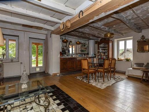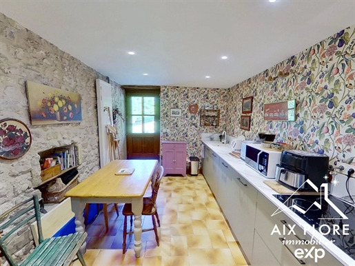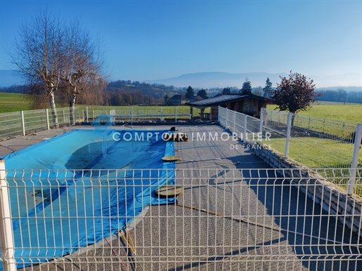 Bugey (Ain) Propriete De 248 m². Terrain 3 340 m² 6 Chambres Piscine Atelier Indépendant Vous rêvez d'espace, de nature et d'authenticité ? Située dans un hameau de Rix à 2 km de Lhuis (Ain), cette grande maison familiale de caractère vous offre une qualité de vie rare, entre calme bucolique et richesse culturelle. À seulement 10 minutes de Morestel, cité dynamique aux multiples expositions artistiques, à 30 minutes de Crémieu, village médiéval aux portes de Lyon et de l'aéroport Saint-Exupéry, vous bénéficiez d'un cadre de vie idyllique sans renoncer à la connexion. Caractéristiques principales : -Surface terrain : 3 340 m² arboré (vergers, potagers, espace détente) -Surface habitable : 248 m² sur trois niveaux -Nombre de chambres : 6 spacieuses chambres -Annexes : Cave, grange/atelier de 54 m², piscine, balcon -Toiture en tuiles écailles, réparée il y a environ 8 ans et récemment démoussée. -Double vitrage avec moustiquaires dans toutes les pièces du bas côté jardin. Disposition intérieure : Rez-de-chaussée : Séjour : 21 m²/Salon : 21 m²/Cuisine : 14 m²/Salle à manger / cuisine secondaire : 15 m²/Petit salon avec chauffage au sol : 17 m²/Pièce attenante polyvalente avec chauffage au sol : 20 m²/WC : 3 m². 4 chambres disposent chacune de leur propre salle de bain. Niveau 1: 2 chambres /Chambre 1 : 18,5 m²/Chambre 2 : 20,5 m². Niveau 2 : 2 chambres /Chambre 3 : 13,8 m²/Chambre 4 : 13.2 m²/Salle de bain : 11,8 m²/Salle d'eau attenante/Dressing : 5 m²/Dégagements : 9 m² + 3,5 m². Sous les combles : Petite chambre /Salon-chambre : 29 m² /Toilettes : 5,5 m²/Balcon. Chauffage et énergie : Chaudière biofioul à condensation installée en décembre 2024 (conforme à la réglementation). Compatible fioul traditionnel et biofioul. Il existe du fioul traditionnel nouvelle génération qui n'a pas de souffre. Pour le système de chauffage, il y a deux thermostats : un pour le chauffage au sol et un pour les radiateurs dans le reste de la maison. Ballon d'eau chaude électrique de 300 L, indépendant de la chaudière. Point de chauffe au bois labellisé Flamme Verte. Eau chaude (électrique). Annexes : 3 caves en tout dont une cave de 26 m² avec système de drainage naturel. Atelier indépendant : 54 m² avec compteur Linky, point d'eau et tuyauterie de chauffage existante (potentiel studio indépendant). Extérieurs et nature : Un véritable havre de paix pour les amoureux de nature et d'autonomie. -2 poiriers, 2 pommiers, 1 cerisier, 2 pêchers, 1 noyer, 1 figuier, 1 kaki, framboisier, cassis etc.... -2 potagers parfaitement entretenus. Piscine en dur (liner scellé), installée en x7. Vie quotidienne et environnement : Vous serez séduits par la richesse naturelle du Bugey, son calme, ses forêts à explorer, ses sentiers de randonnée ou de vélo (ViaRhôna à proximité), et sa qualité de vie incomparable. Attention : ce bien s'adresse à des acquéreurs en quête d'authenticité. Ici, pas de commerces à chaque coin de rue, mais une vraie respiration, un retour à l'essentiel. À noter : la maison n'est pas adaptée aux personnes à mobilité réduite (présence d'escaliers). Informations complémentaires : Isolation en Siporex au rez-de-chaussée (excellent confort thermique et phonique). Plafonds abaissés pour optimiser la chaleur. Pourquoi investir ici ? Parce que vous cherchez plus qu'une maison. Vous cherchez un lieu de vie, un projet de vie, un coin de paradis où cultiver vos légumes, vos fruits, vos passions. La maison a auparavant fonctionné en tant que chambre...
