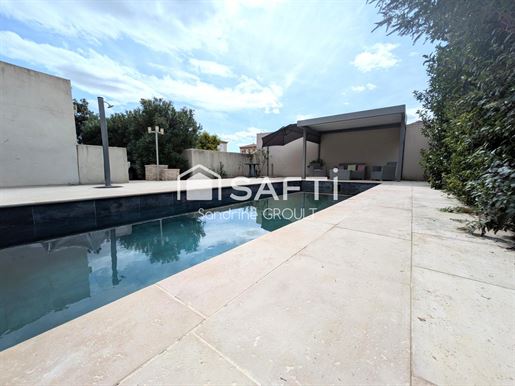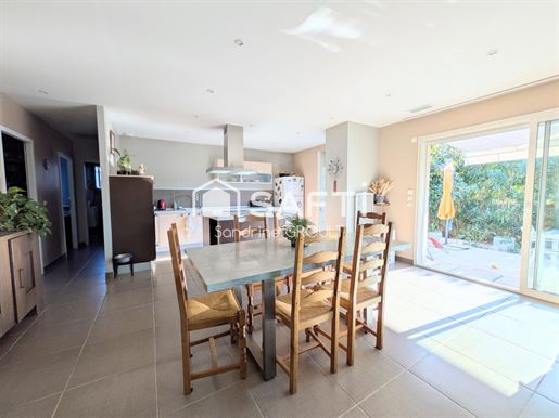 Située dans un lotissement très calme de 6 maisons, cette villa 4 faces construite en 2008 offre un cadre de vie idéal pour une famille, à seulement 5 minutes de Béziers et 25 minutes des plages. Elle se compose ainsi: Rez-de-chaussée : - spacieux séjour de 50 m², lumineux et convivial avec cuisine refaite en 2021, - salon Tv de 24 m², parfait pour les moments en famille, - 1 chambre avec placard intégré, - 1 chambre parentale avec dressing, - une grande salle de bain avec douche à l’italienne et baignoire, - Wc indépendants avec lave mains. Étage : - 3 chambres, - Balcon traversant avec vue dégagée, - Salle de bain avec douche, - Wc indépendants. Equipements: - Chauffe eau solaire, - Système de chauffage et climatisation gainable avec des thermostats dans chaque pièce, - Isolation répondant aux normes actuelles de construction, - Volets roulants électriques avec commande individuelle dans chaque pièce et centralisée à l'entrée, - Nombreuses prises Rj45 reliées à la box internet installée dans le garage, - Garage d'une grande hauteur de plafond et nombreux rangements, - Cour pavée et carport pouvant abriter 2 voitures, en tout, vous pourrez garer jusqu'à 4 véhicules, - Portail en alu automatisé, porte d'entrée en alu contemporaine, - Alarme, - Terrasse, - Barbecue bâti. À l’extérieur, vous profiterez d’un terrain de 786 m², offrant de nombreuses possibilités d’aménagement (comme une piscine, cuisine d’été, espace jeux, terrain de pétanque…). Le tout dans un environnement très calme et recherché, à proximité des commodités, école et axes principaux. Dans notre village vous trouverez une école maternelle et primaire, médecin, dentistes, paramédicaux, un Lidl, un tabac, domaines viticoles, des commerces ambulants 3 fois par semaine, des activités grâce aux associations dynamiques (pour les enfants, sport, hobbies, fêtes locales...), Points Forts: Un grand espace de vie et nombreuses chambres pour vos moments en famille ou entre amis. Un cadre agréable, calme et proche de la nature. Agences s'abstenir, merci.