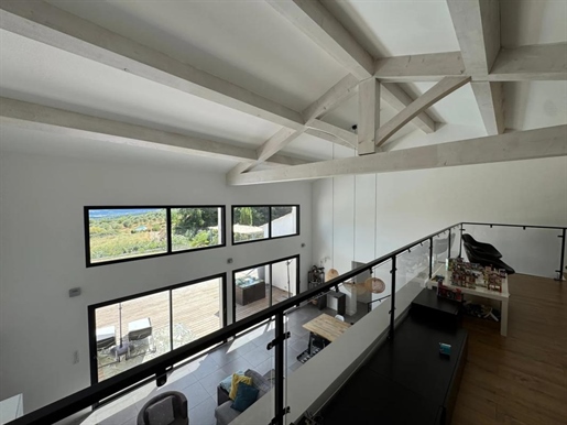 Élevée sur deux niveaux et partiellement mitoyenne à l'arrière sans aucun vis-à-vis, la maison principale se compose :
