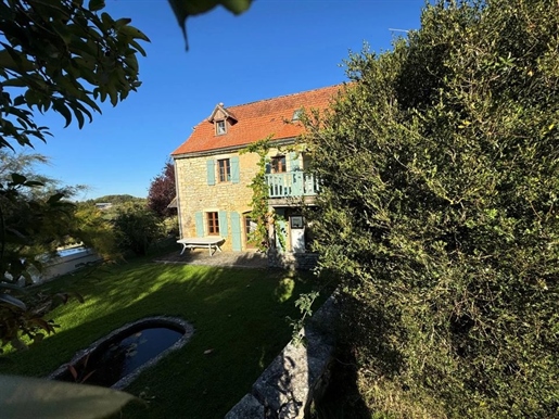 46250 dans le Lot au coeur de la Bouriane ancien moulin de près 330 m² au total, soigneusement restauré, 3 jolis gîtes et grange avec 2 salle de réception, piscine (10 x 5). Le tout sur plus de 8 hectares de terrain avec forêts, mares, source et cours d'eau.