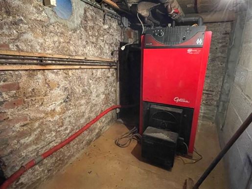 This property also includes a basement cellar and an attic. Heating is provided by an oil-fired boiler (1997). The window frames are wooden and the north side has secondary glazing. Shutters on all windows. Fibre optic broadband is installed. The property has an individual septic tank system which needs to be brought up to standard.