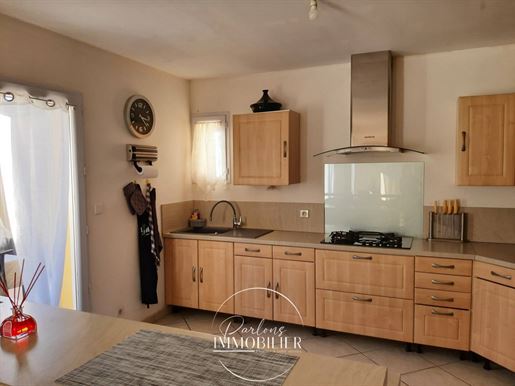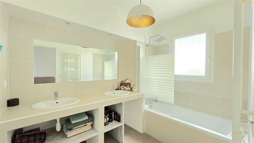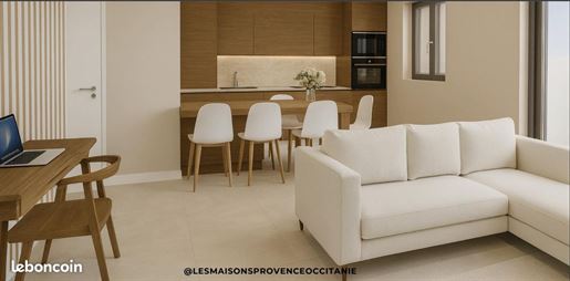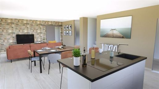 La cuisine neuve et entièrement équipée s'intègre avec fluidité à un séjour convivial, spacieux et sans contrainte.