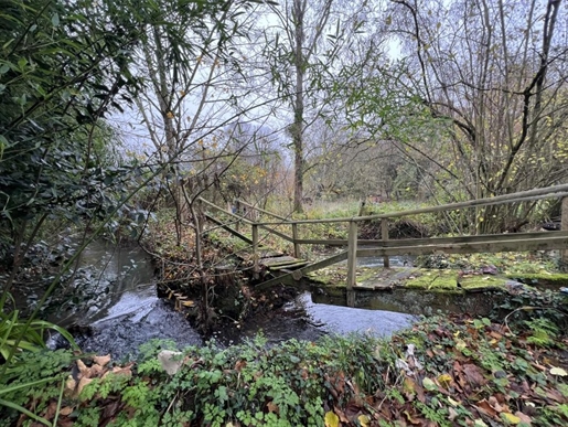 Les pièces de vie, situées à l'étage, séduisent par leur belle luminosité naturelle et leur ambiance chaleureuse. Le parquet ancien, patiné par le temps, confère une élégance intemporelle à l'ensemble.Le salon, à l'atmosphère douce et feutrée, est mis en valeur par de magnifiques poutres apparentes et des cheminées décoratives. Une séparation en bois ajouré, à la fois esthétique et authentique, structure l'espace avec subtilité.