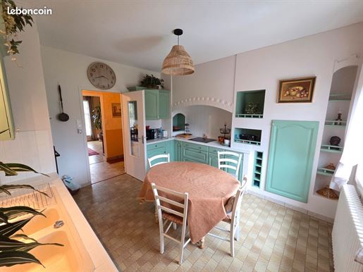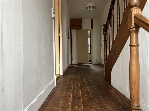 Dans le prolongement naturel du salon, la salle à manger offre un espace convivial et accueillant, idéal pour recevoir.La cuisine, accessible directement depuis la pièce de vie, constitue un véritable coup de coeur. Elle conjugue harmonieusement le charme de l'ancien et le confort contemporain : boiseries d'époque et placards anciens conservés, cheminée ancienne devenue un élément décoratif fort, cuisine fonctionnelle et moderne parfaitement intégrée, belle luminosité et accès direct à un jardin d'environ 50 m2, créant un lien privilégié entre intérieur et extérieur.