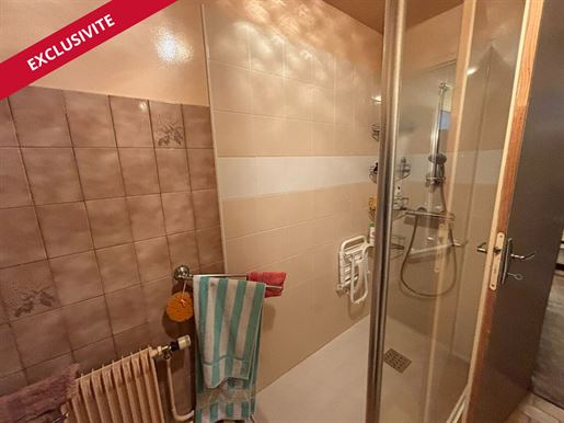 Au premier étage, une salle d'eau entièrement rénovée séduit par ses lignes sobres et contemporaines. Les matériaux choisis et la qualité de la rénovation en font un espace à la fois pratique et élégant, parfaitement intégré au cachet de la maison.