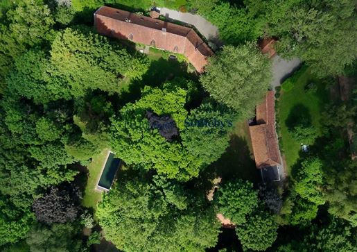 A la vente, cette propriété historique est nichée au cœur de 4 hectares de bois et d'une biodiversité incroyable, à l'abri des regards.