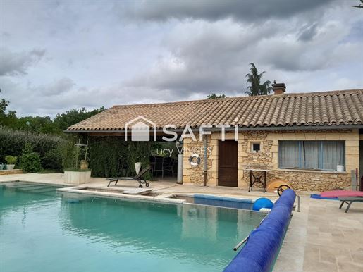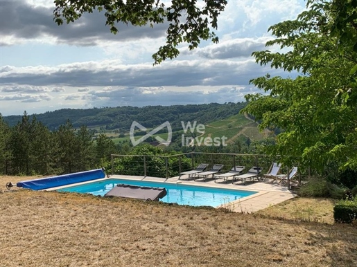 Iad France - Pierre Jougla vous propose : Maison D'architecte Avec Vue Sur La Vallée ! Dans un environnement calme et privilégié, avec vue sur la vallée, cette maison d’architecte de 114 m², exposée plein sud, offre un confort de vie exceptionnel grâce à ses équipements haut de gamme, sa conception moderne et son ambiance chaleureuse. Construite en 2016 sur un terrain arboré de 1 671 m², elle allie parfaitement design contemporain, efficacité énergétique et fonctionnalité. Dès l’entrée, on découvre une grande pièce de vie climatisée, regroupant séjour, salle à manger et cuisine équipée sur près de 51 m². L’Atmosphère y est accueillante et cosy, renforcée par la présence d’un élégant poêle à bois suédois. Une buanderie spacieuse, une penderie, ainsi qu’une salle d’eau avec toilettes complètent ce rez-de-chaussée parfaitement agencé. À l’extérieur, une large terrasse de 50 m², équipée d’une cuisine d’été aménagée, invite à profiter pleinement des beaux jours dans une ambiance conviviale. À l’étage, l’espace nuit climatisé se compose de trois belles chambres avec rangements intégrés. Deux d’entre elles disposent d’une baie vitrée donnant sur une terrasse, véritable prolongement de l’espace intérieur vers l’extérieur. Une grande salle d’eau avec douche à l’italienne, des toilettes indépendants et une seconde terrasse de 12 m² viennent parfaire cet étage pensé pour le confort de toute la famille. Le jardin, soigneusement aménagé, abrite un espace piscine sécurisé, véritable havre de détente. La piscine chauffée (par pompe à chaleur), traitée au sel, est équipée d’un volet motorisé. Un pool house de 18 m² et un local technique de 4,40 m² complètent cet espace extérieur idéal pour recevoir ou se relaxer en toute tranquillité. Côté pratique, un garage motorisé de 30,80 m², une serre, un chalet annexe amenage de 25 m², plusieurs cabanons de rangement ainsi qu’un système de récupération d’eau de pluie avec cuve de 3 000 L et pompe intégrée viennent enrichir les prestations de ce bien rare. La maison est entièrement raccordée au tout-à-l’égout et bénéficie de la fibre optique pour un accès internet haut débit. Grâce à son excellente isolation, son système de chauffage / rafraîchissement par le sol, ses menuiseries aluminium double vitrage et son chauffe-eau thermodynamique, cette maison affiche un Dpe A et un Ges A, gages de performance énergétique et de maîtrise des consommations. Ce bien, à la fois fonctionnel, élégant et parfaitement entretenu, offre un cadre de vie serein, confortable et qualitatif, à proximité des commodités. Il séduira les familles en quête d’espace, de lumière, et de prestations. Contactez moi pour organiser une visite ! Honoraires d'agence à la charge du vendeur. Information d'affichage énergétique sur ce bien : classe Energie A indice 60 et classe Climat A indice 1. Les informations sur les risques auxquels ce bien est exposé, y compris l'obligation légale de débroussaillement, sont disponibles sur le site Géorisques : La présente annonce immobilière a été rédigée sous la responsabilité éditoriale de M Pierre Jougla mandataire indépendant en immobilier (sans détention de fonds), agent commercial de la Sas France immatriculé au Rsac de Cahors sous le numéro , titulaire de la carte de démarchage immobilier pour le compte de la société France SAS.Informations Loi Alur : Honoraires charge vendeur. (Gedeon )