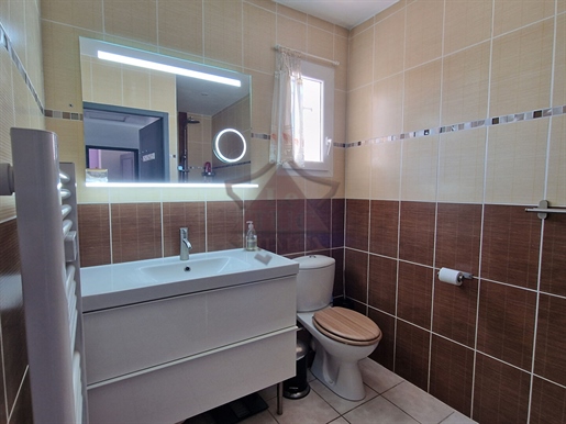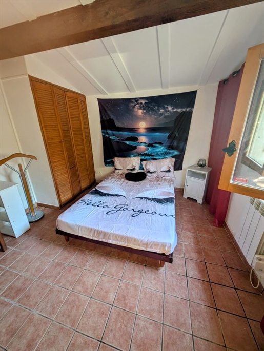 Elle dispose d'un salon de 22 m2, une pièce de 9,40 m2, 24 m2 de salle à manger/cusine avec 5,60 m2 de terrasse au Sud, 4,70 m2 de couloir distribuant une piéce de 3,60 m2 , un Wc, une salle d'eau de 5 m2, une piéce de 4,75 m2 et une piéce au fond de 9,75 m2 avec dressing. Couchages possibles jusqu'à 8 personnes avec des lits superposés dans les petites pièces.