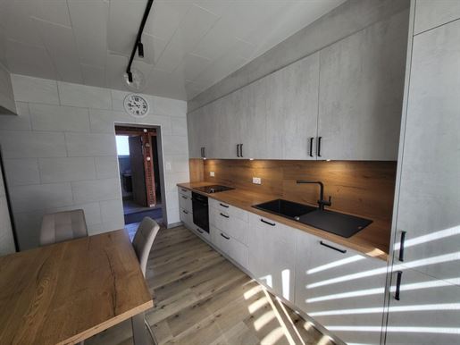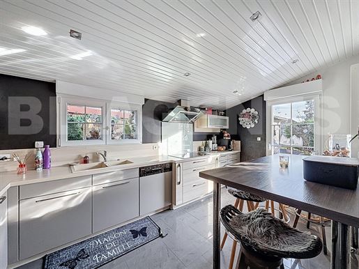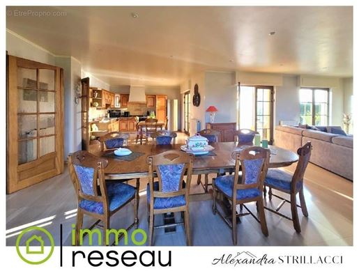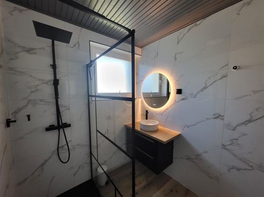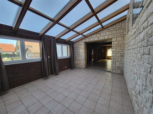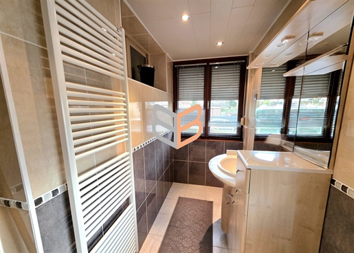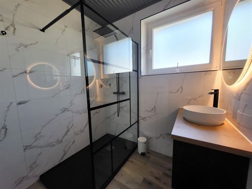 L'entrée dessert un Wc séparé ainsi qu'une première salle d'eau, les 2 rénovés il y a 2 ans, comme la prochaine pièce de 11 m2 qui est la cuisine, venant de Mobilia, entièrement équipée. En continuant, nous avons un volume de 50 m2 qui nous attend, dont une partie véranda de 19 m2, agrandissement datant du début des années 2000, le rdc se finissant par une seconde pièce d'eau.